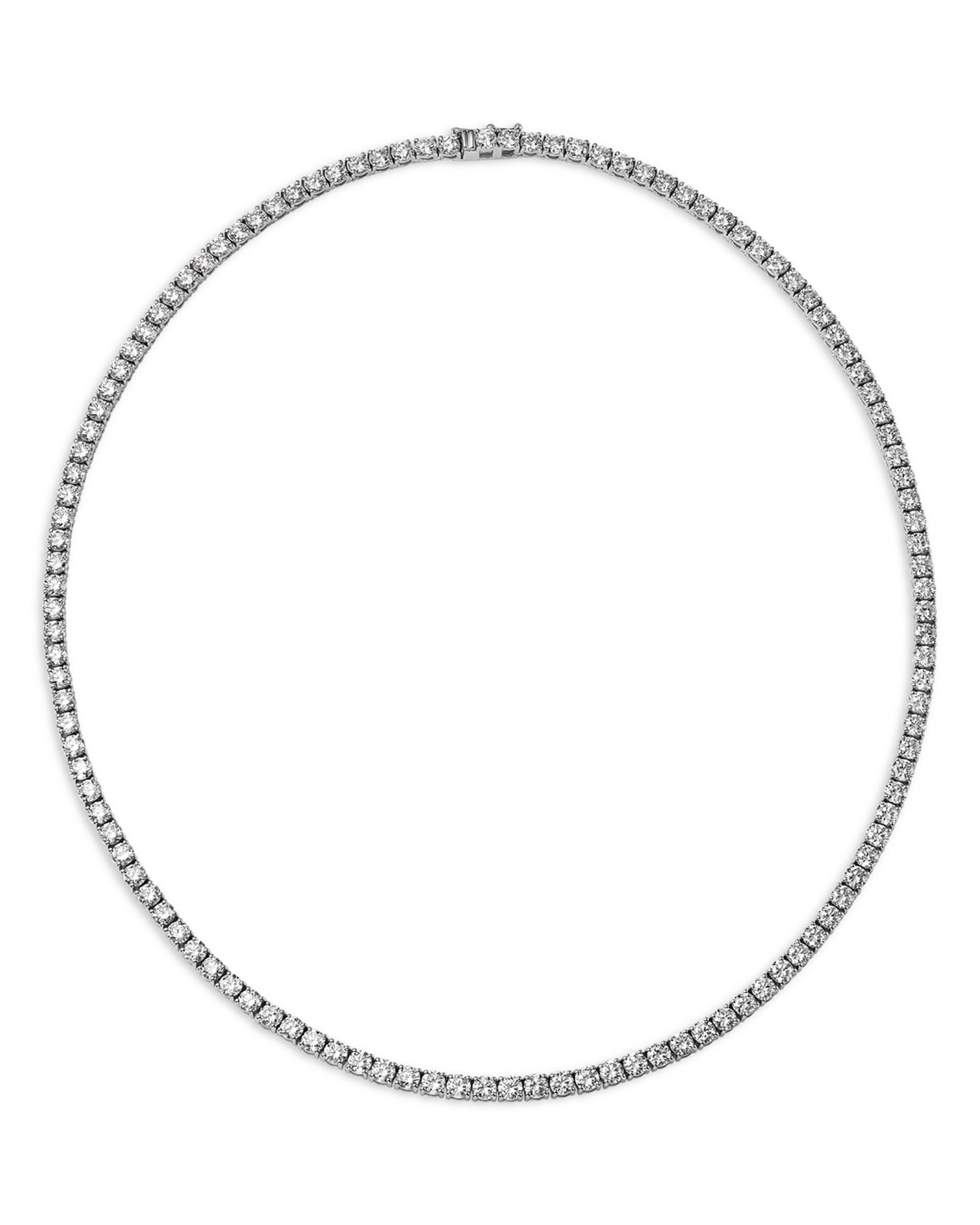 This Certified Diamond Tennis Necklace by Bloomingdale's Fine Collection is a radiant display of luxury. From the Luxe Collection, it features 15 dazzling carats of white diamonds set in polished 14K white gold, encircling the neck with brilliance. Perfect for elevating any formal or special occasion look.