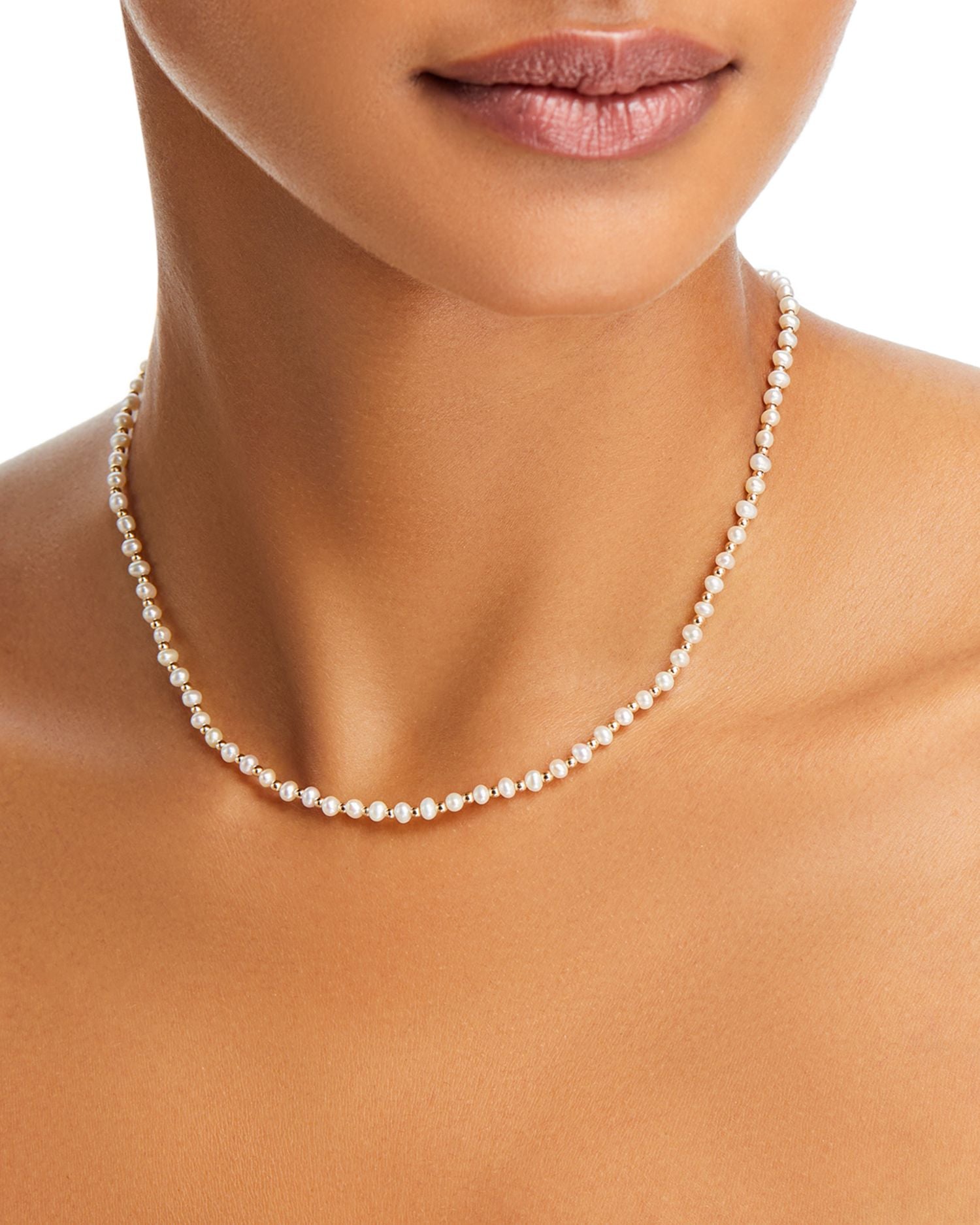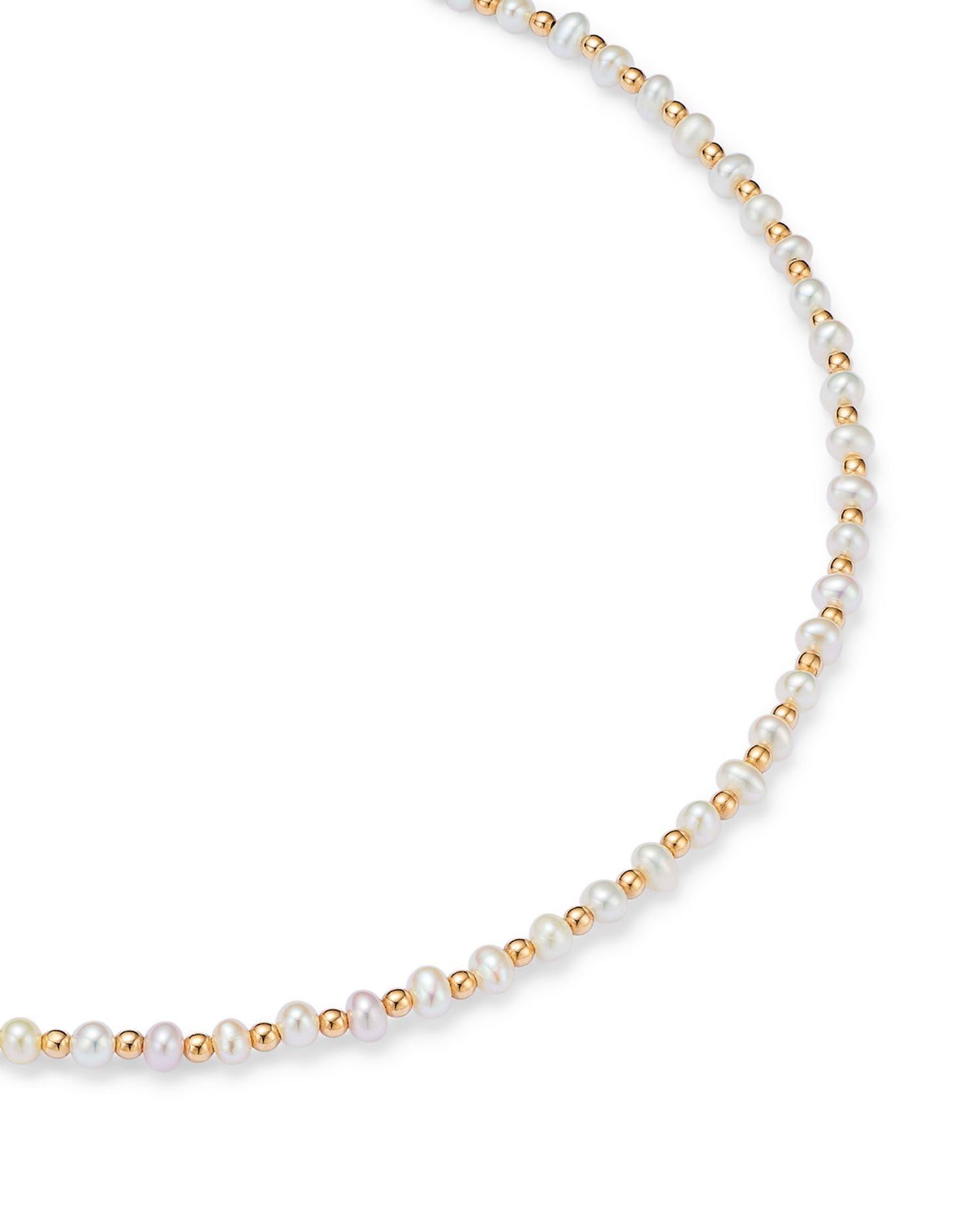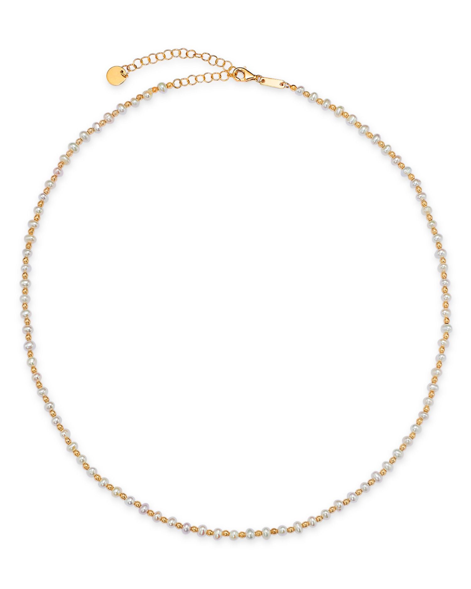Handcrafted in 14K yellow gold. Features cultured freshwater pearls (3-3.9mm). Adjustable necklace length of 16"-18" with a lobster clasp closure. Made in Portugal.