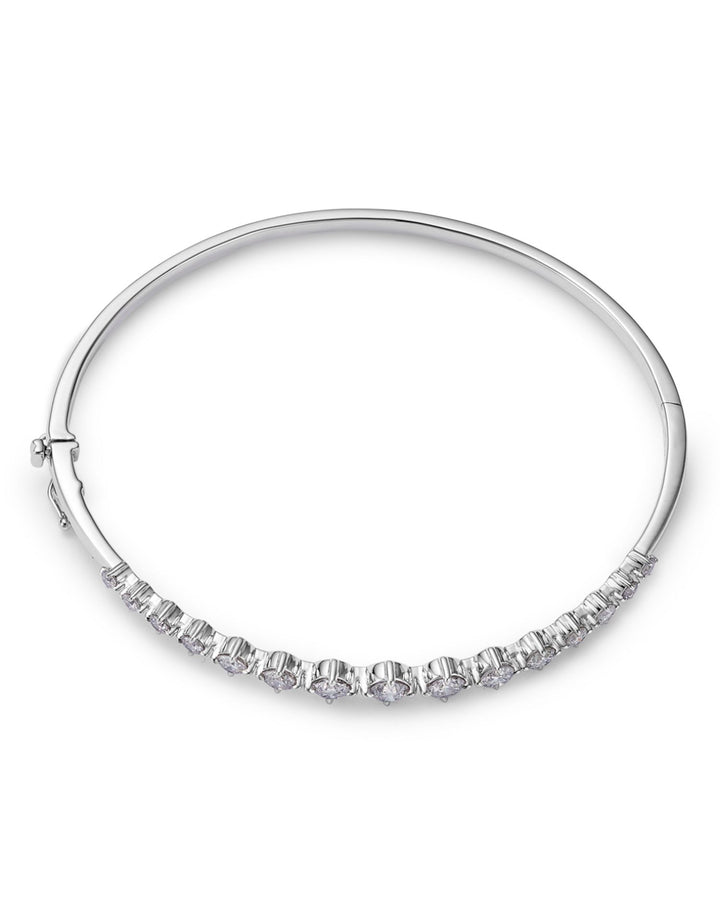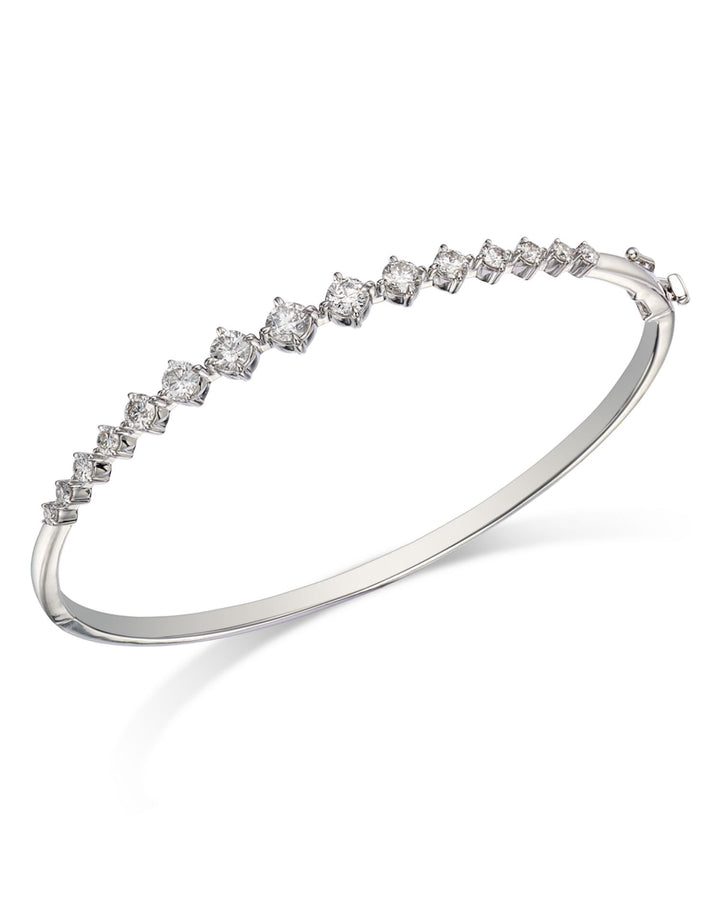 This Diamond Graduated Bangle Bracelet by Bloomingdale's Fine Collection radiates exceptional sparkle with a series of diamonds in a graduated style. The timeless elegance of the 14K white gold design makes it perfect for adding sophistication to any outfit.