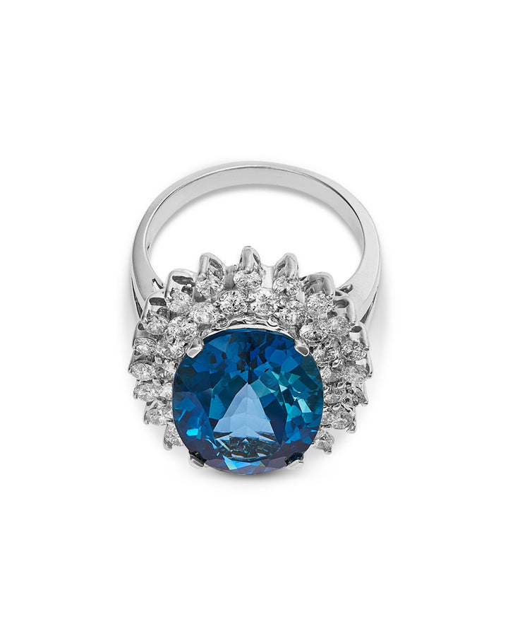 Blue Topaz & Diamond Ring in 14K White Gold