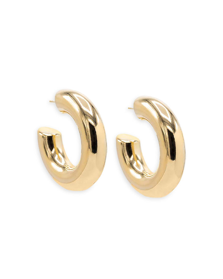 These Chunky Bubble Hoop Earrings by Adina Eden are a bold and playful design, featuring a glossy gold-filled finish. Their substantial size makes them a standout piece for elevating casual or formal outfits.
