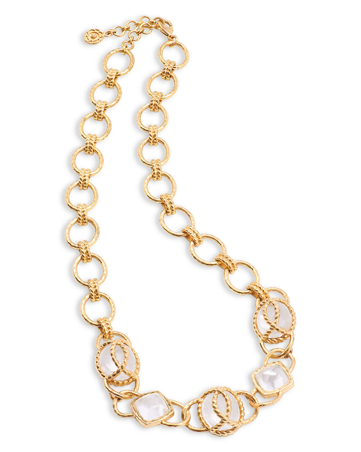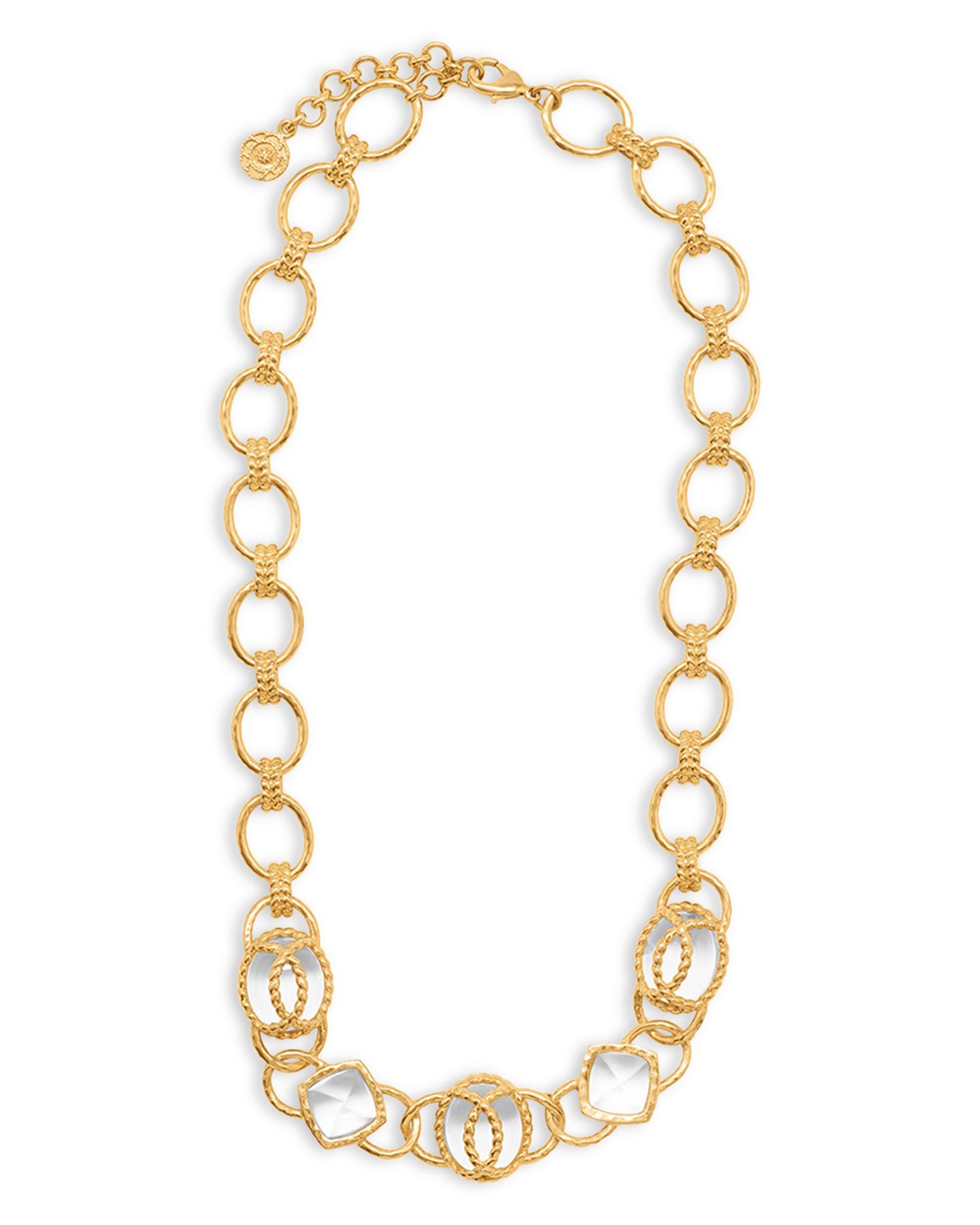 Made in 18K gold-plated brass with quartz accents, this necklace measures 18 inches long with a 2-inch extender. It secures with a lobster clasp closure. Made in India, showcasing exceptional craftsmanship.