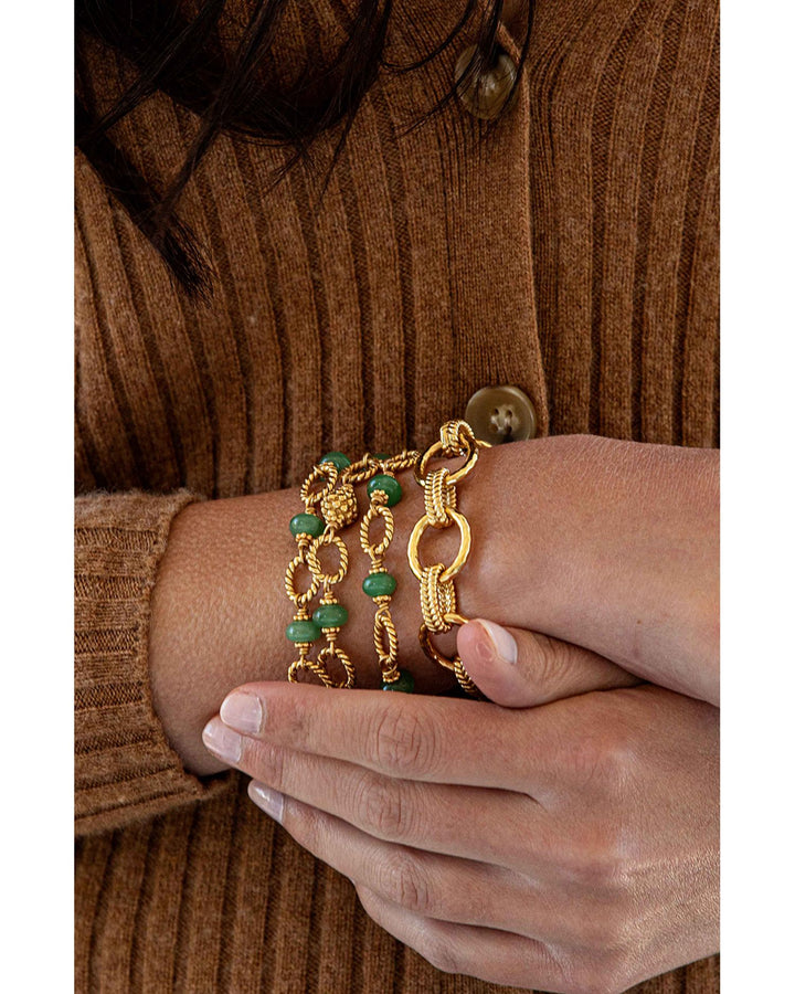 This Berry & Bead Chain Necklace by Capucine De Wulf combines organic and luxurious elements. Featuring a 24-inch length, its jade accents and 18K gold-plated finish create a piece that’s both versatile and elegant. Ideal for layering or wearing solo, it effortlessly enhances any outfit.
