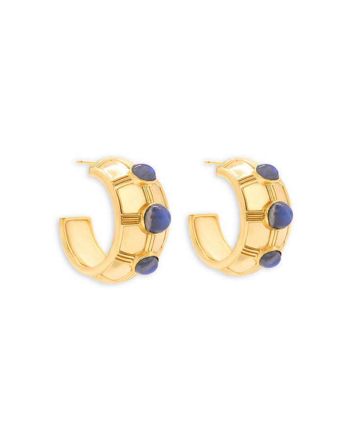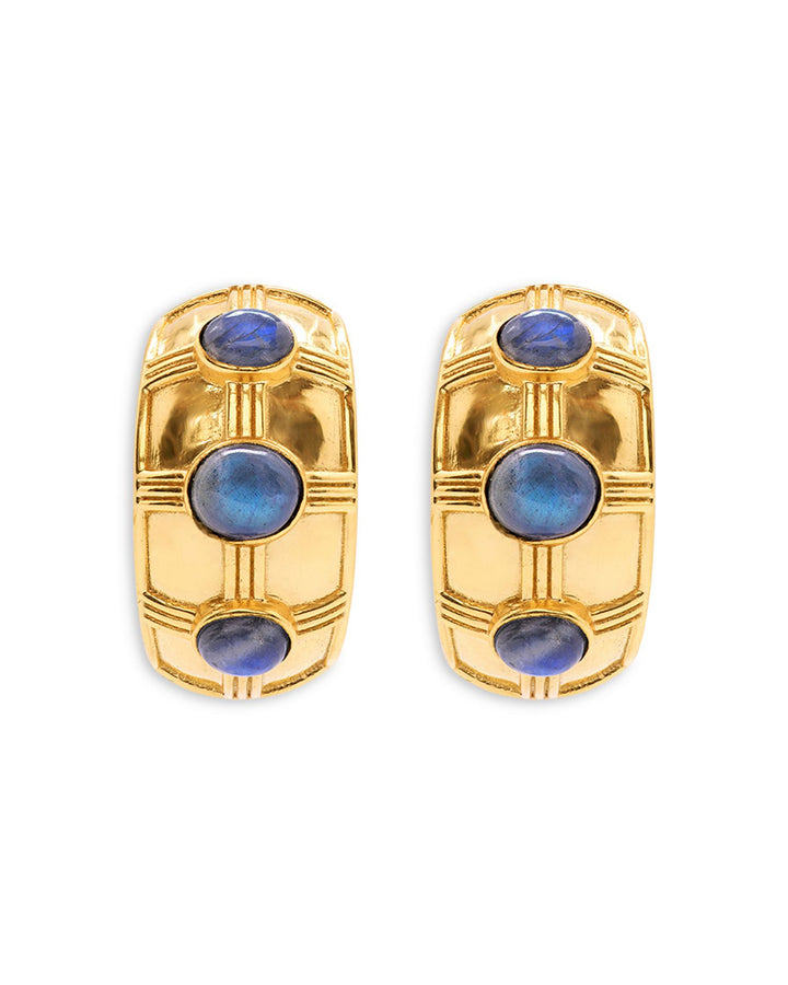Bold Labradorite Hoop Earrings in 18K Gold Plated
