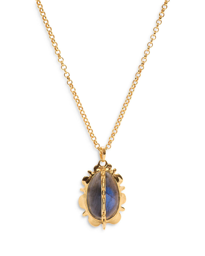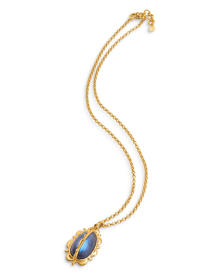 This Bliss Blue Labradorite Pendant Necklace by Capucine De Wulf from the Bliss collection is a graceful statement of elegance. Featuring a luminous labradorite pendant framed in gold-plated brass, its 21-inch adjustable length makes it ideal for layering or wearing solo.