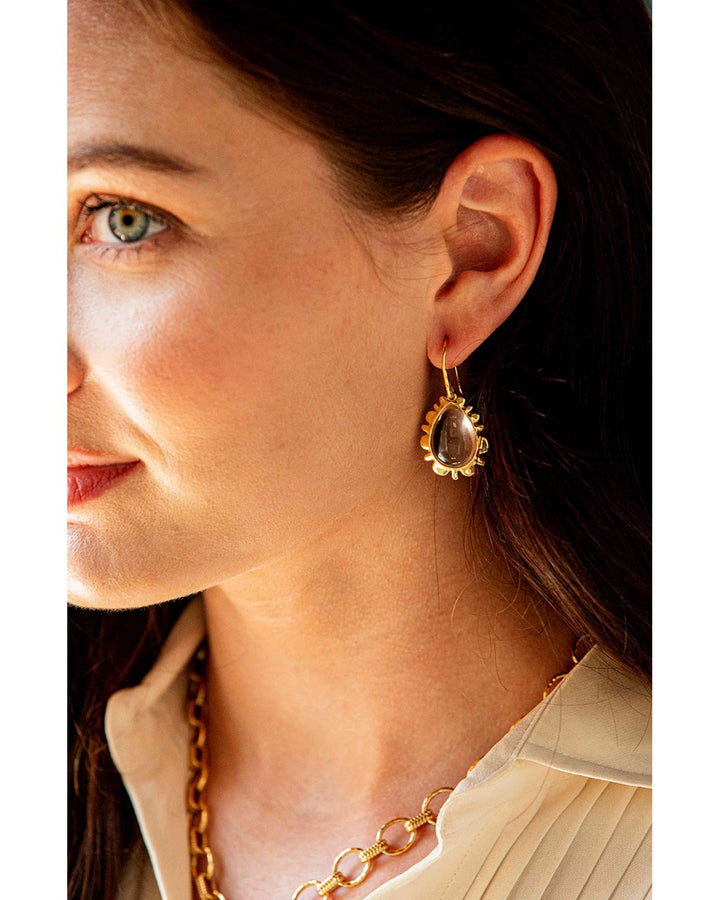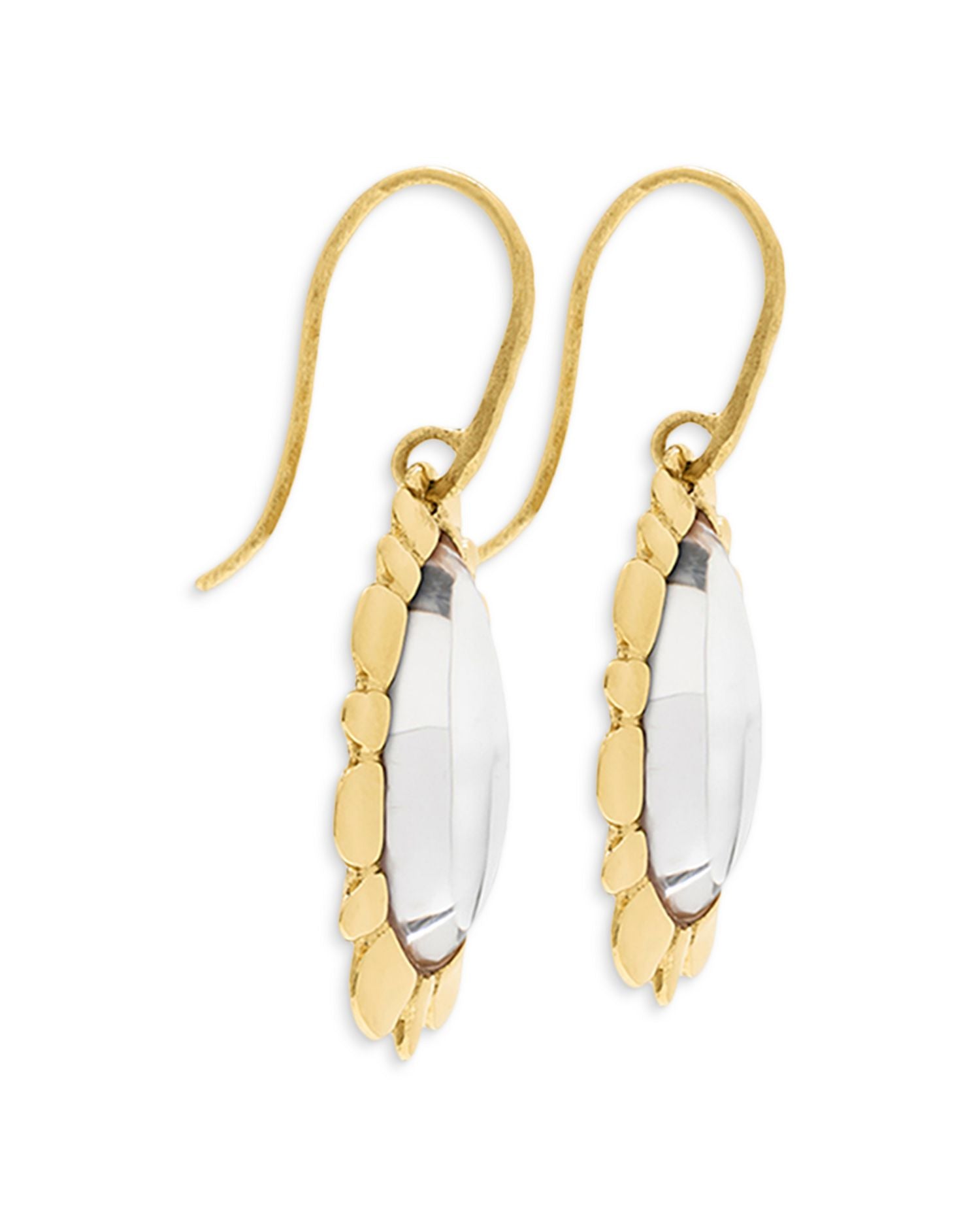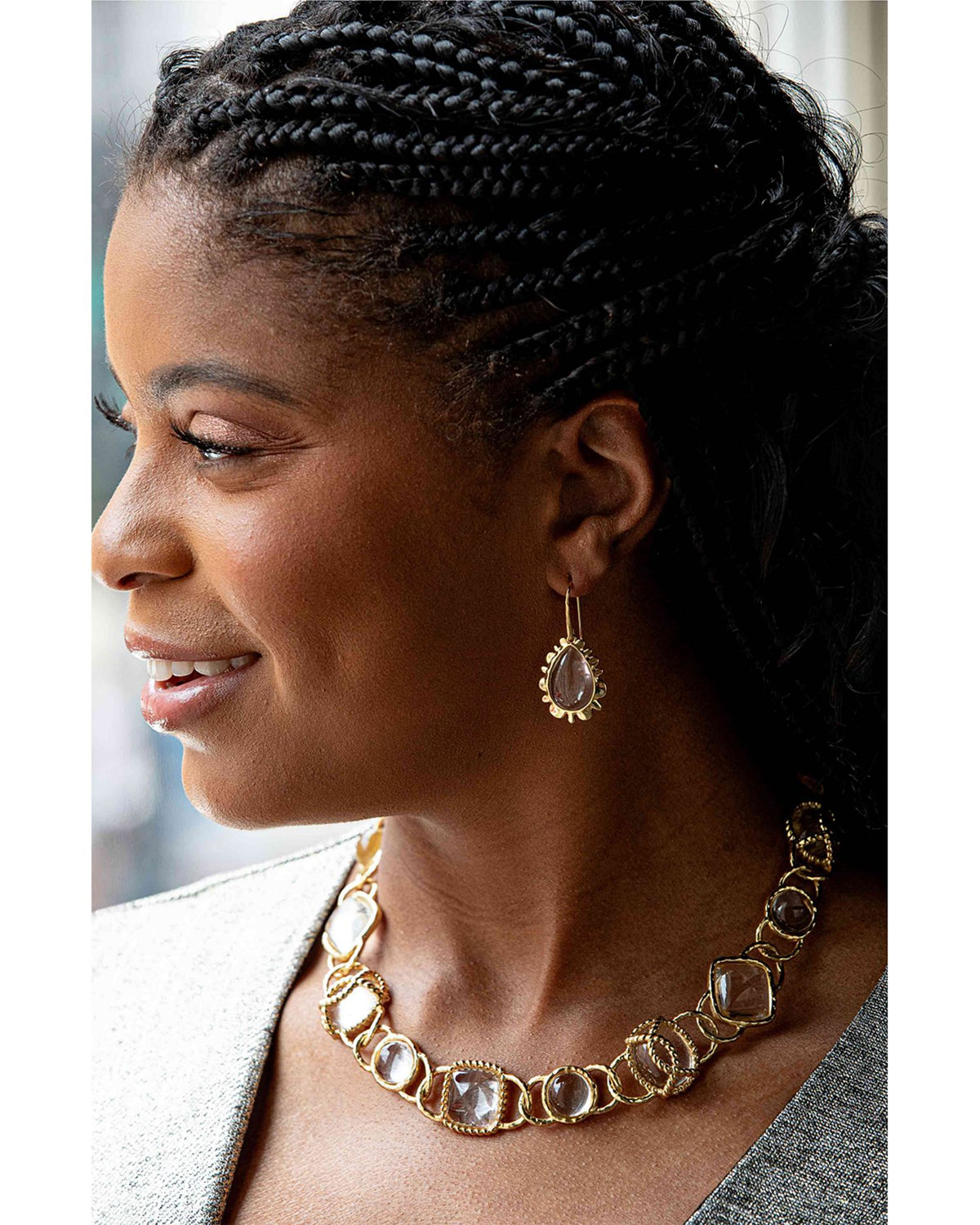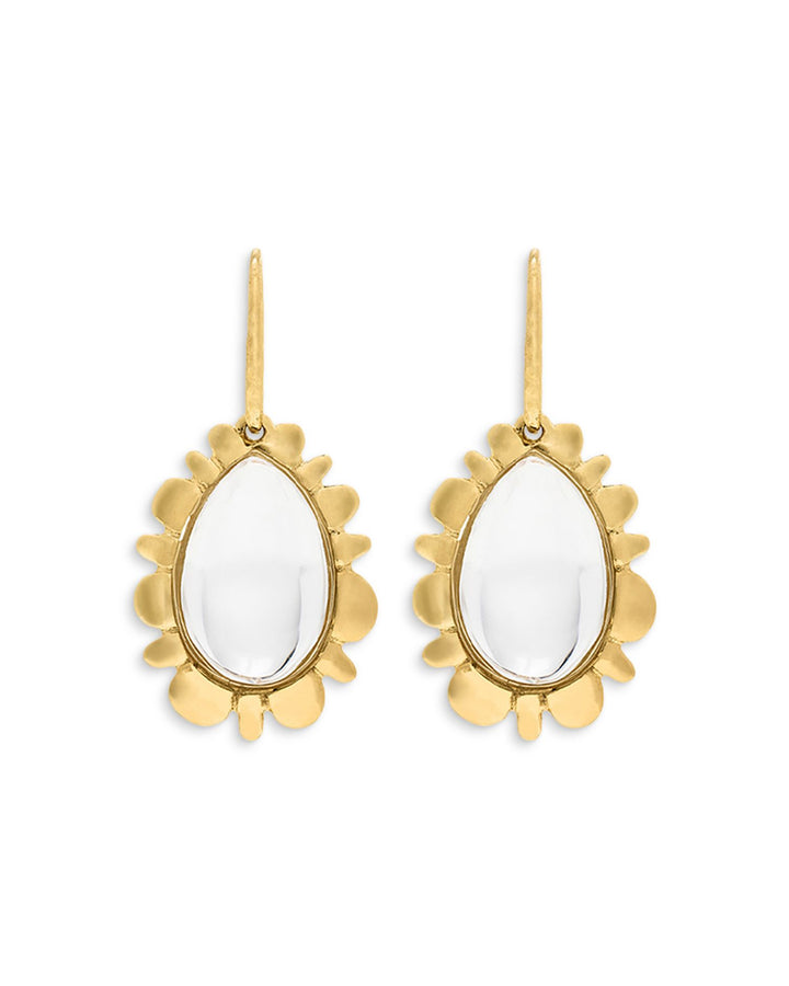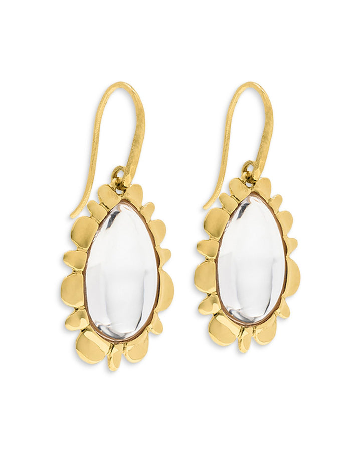 These Bliss Quartz Drop Earrings by Capucine De Wulf are a timeless and elegant accessory. Featuring luminous quartz drops framed in 18K gold plating, their 1.5-inch length and lightweight design make them perfect for day-to-night transitions.