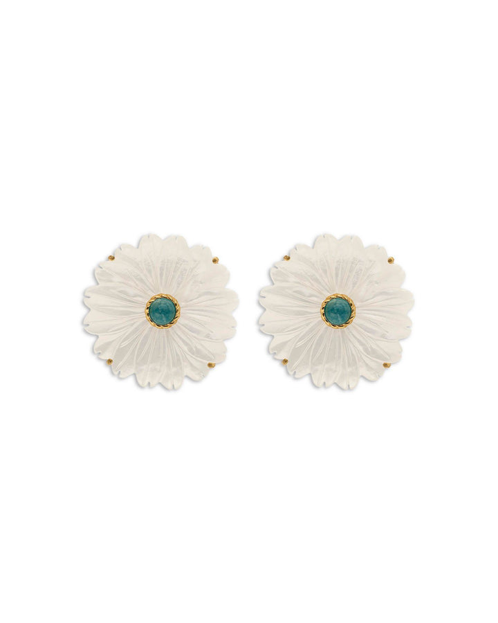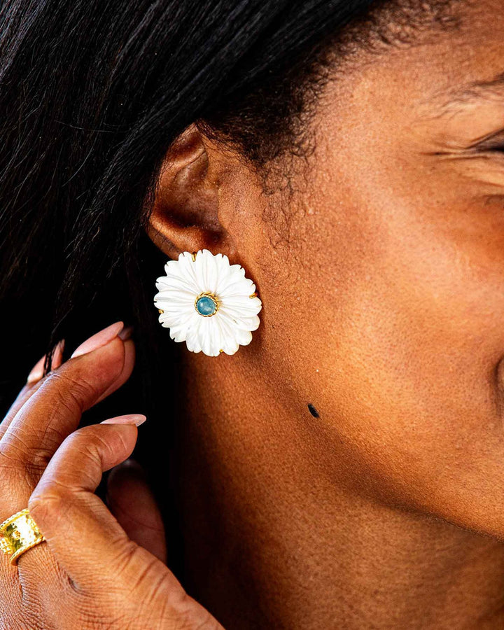 Mermaid Garden Mother of Pearl Flower Stud Earrings