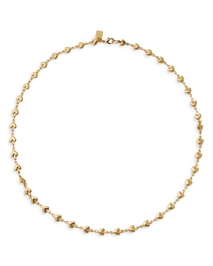 This Habibi Heart Chain Necklace by Crystal Haze is a modern take on timeless romance. Featuring a bold heart charm on a sleek chain, its 18.5-inch length makes it ideal for layering or wearing solo. The gold-plated finish adds a luxurious touch to this contemporary piece.