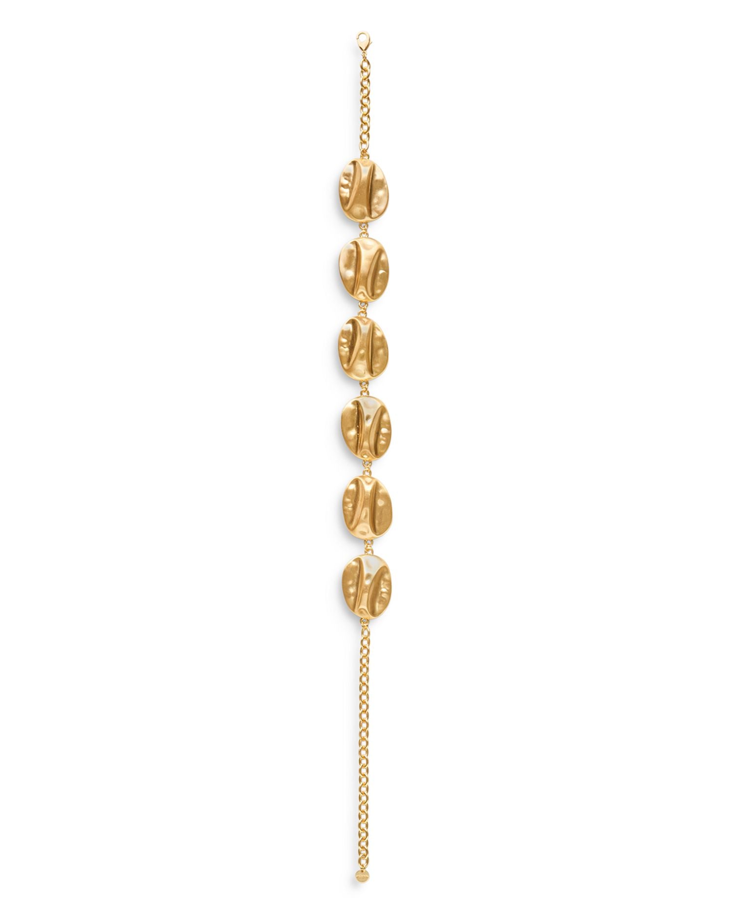 This Veda Statement Choker Necklace by Cult Gaia from the Veda collection is a striking accessory. Featuring a sleek gold-tone finish and a bold 1.5-inch frontal length, its adjustable 13-17.5-inch chain allows for versatile styling. Ideal for adding drama to your ensemble.