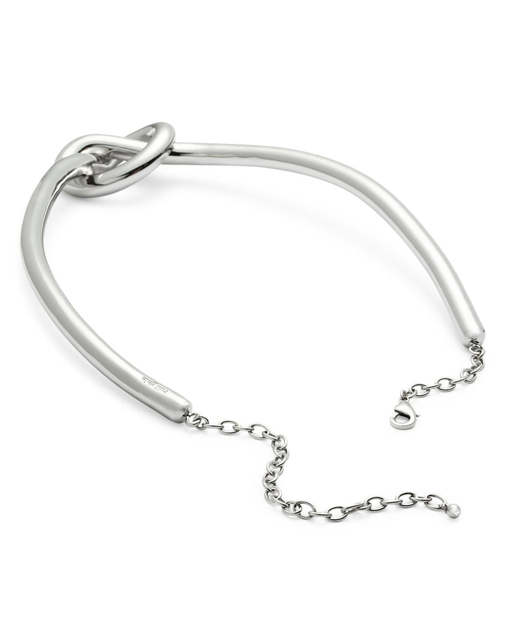 This Lana Choker Necklace by Cult Gaia is a sleek and versatile accessory. Featuring a white gold-plated finish, its adjustable 13-inch length with a 7-inch extender makes it perfect for layering or wearing solo. The 1.25-inch pendant adds a subtle yet elegant detail.