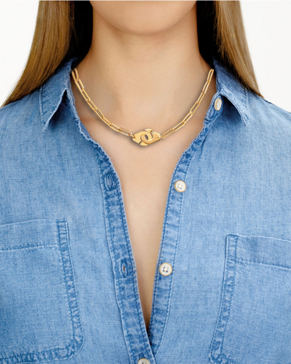 This 18K Yellow Gold Menottes Chain Necklace by Dinh Van from the Menottes collection is a modern classic. Featuring elongated oval links in brushed gold, its 17.3-inch length makes it a versatile accessory that pairs effortlessly with casual or formal ensembles.