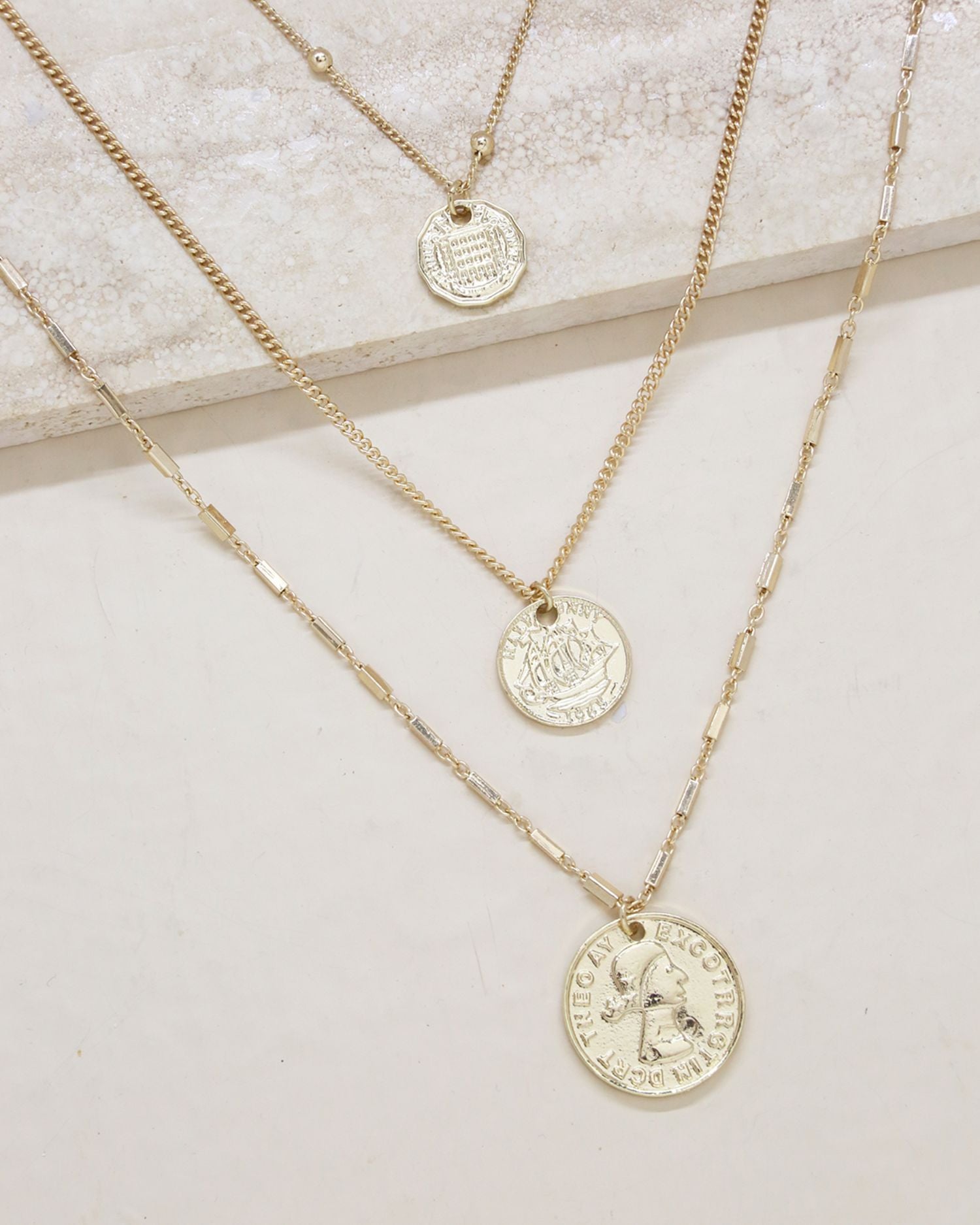 Coin Pendant Necklaces in 18K Gold Plate, Set of 3