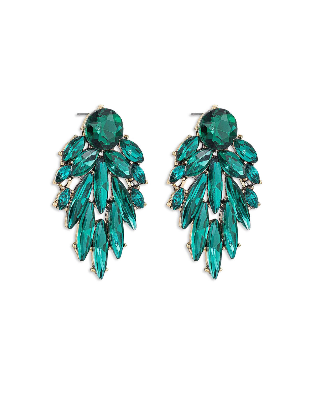 18K gold-plated metal with glass accents. Length: 1.7'. Post back closure.