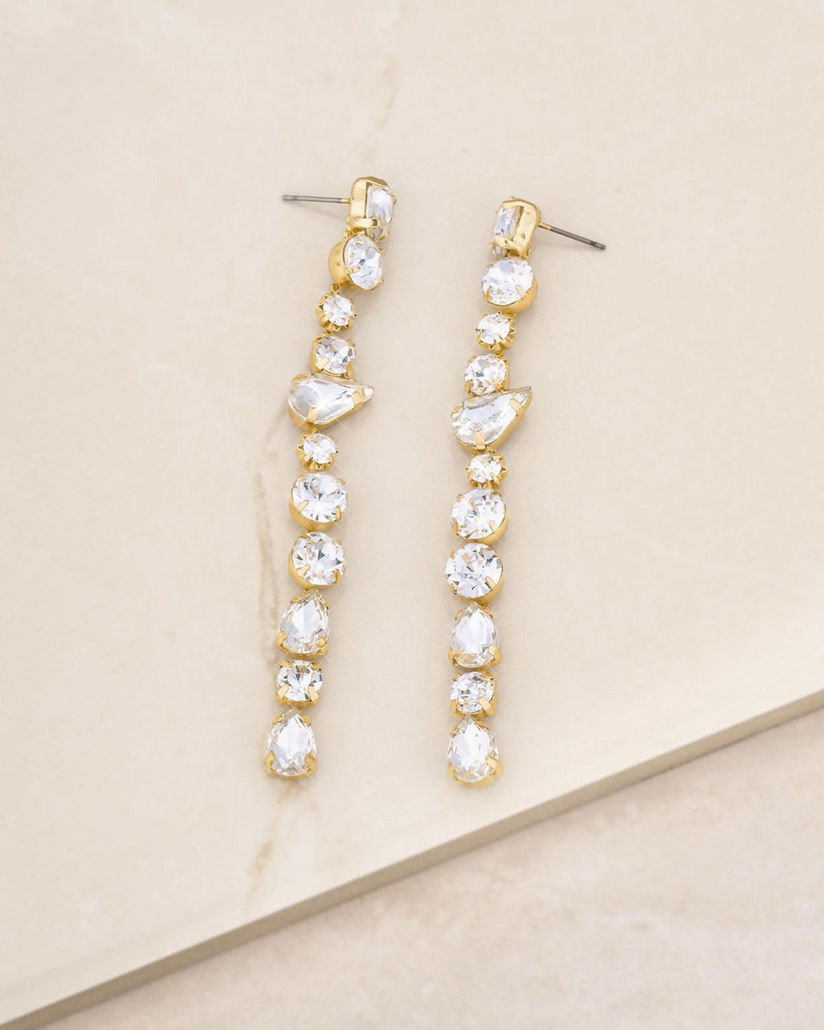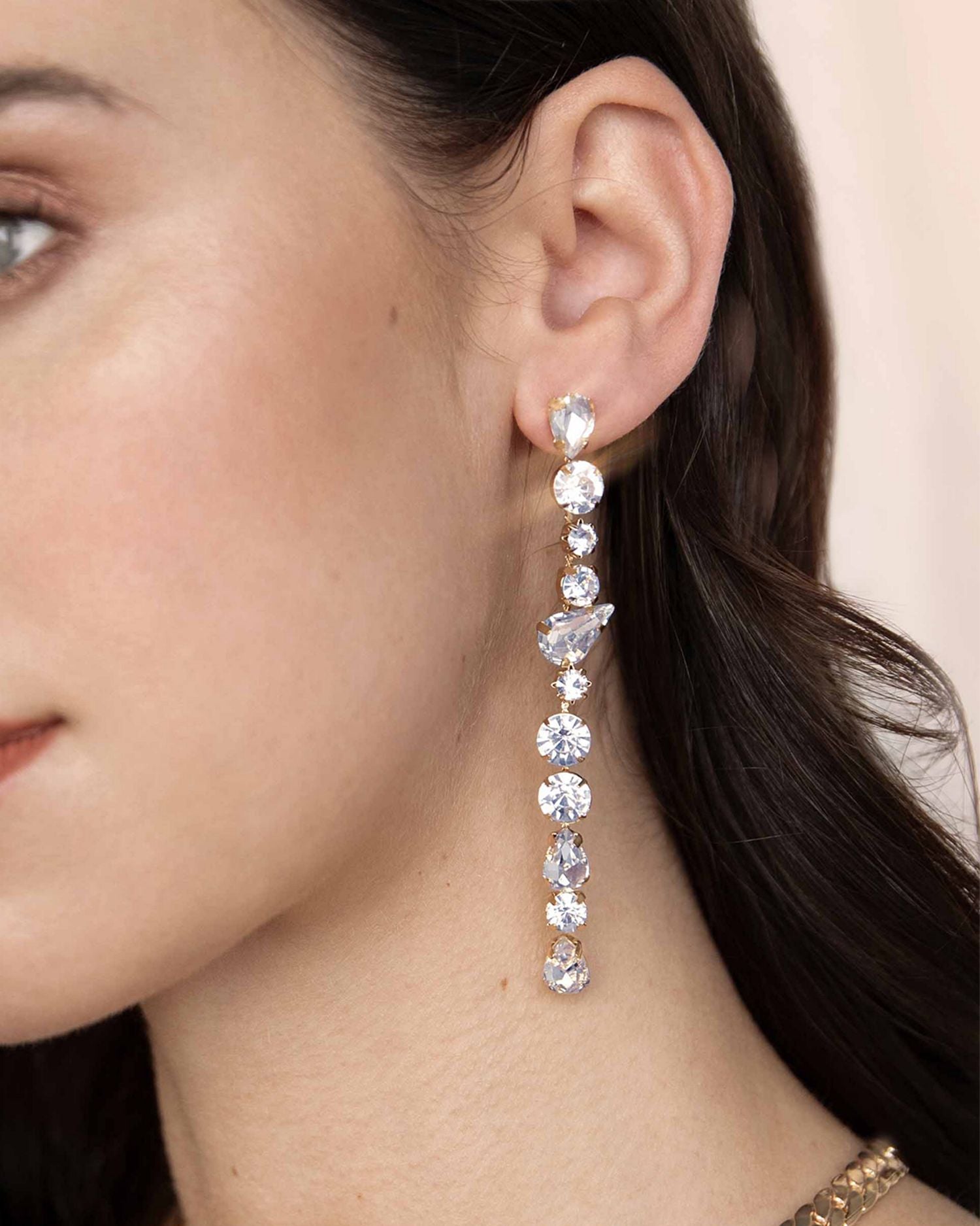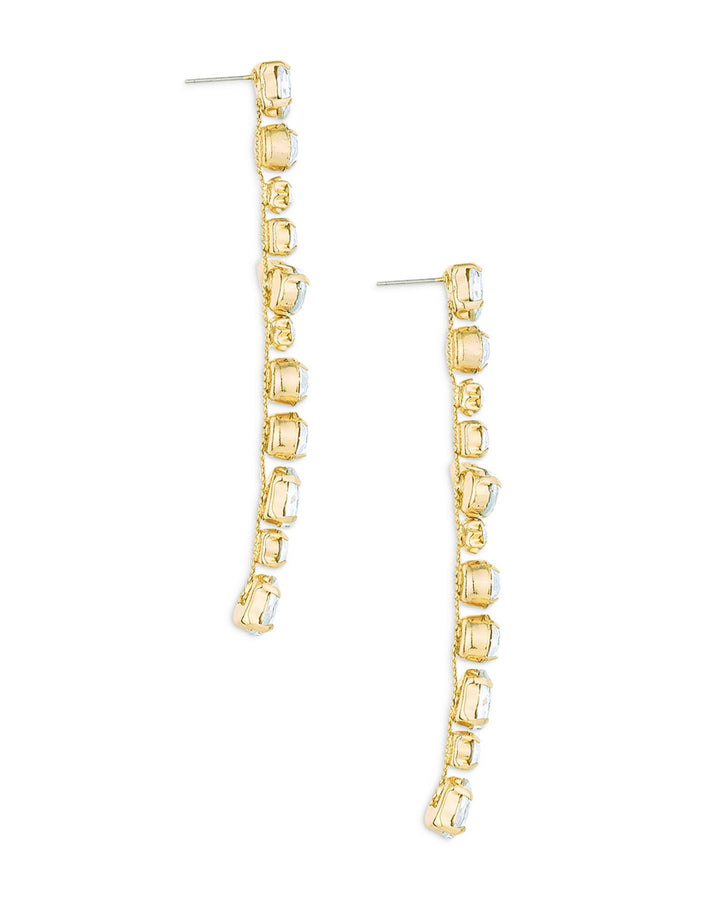 These Ice Drop Dangle Earrings by Ettika exude elegance with their delicate design and shimmering glass accents. Perfect for adding a touch of glamour to any outfit.
