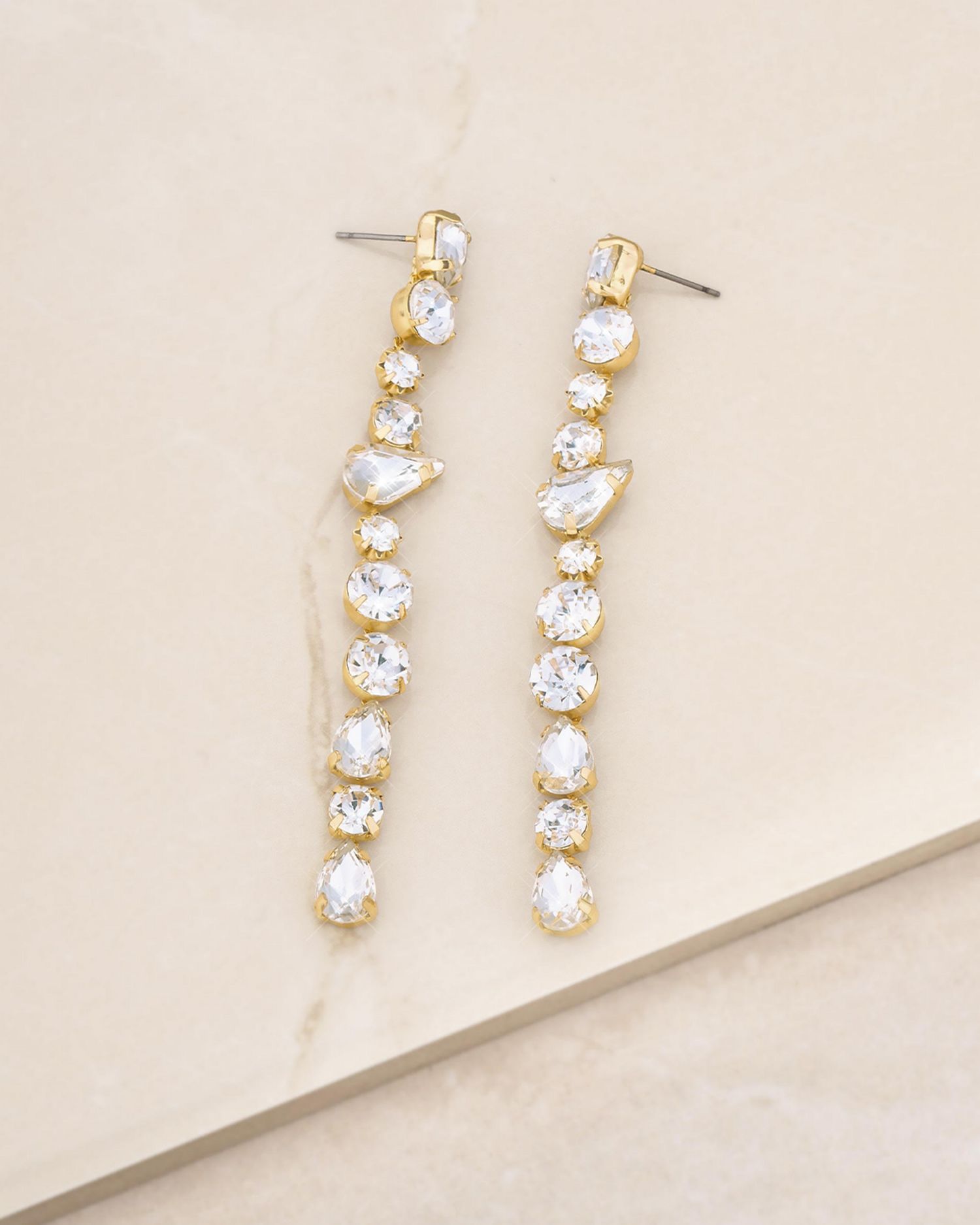 18K gold-plated brass with glass accents. Length: 2.75". Post back closure.