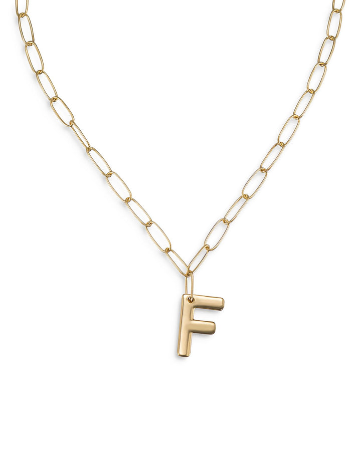 Paperclip Link Chain Initial Pendant Necklace in 18K Gold Plated, 18'