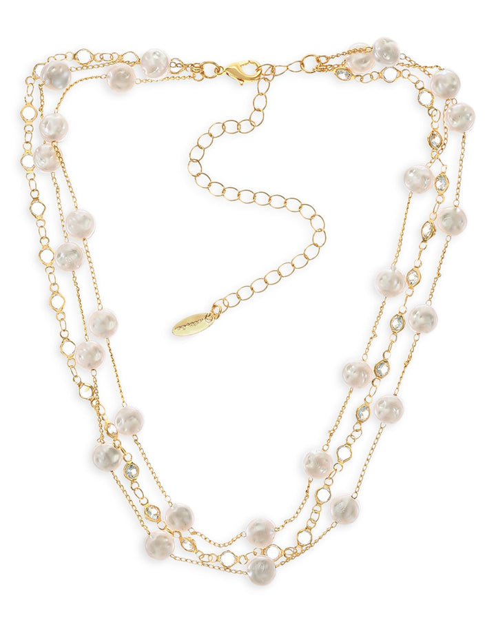 Dressed In Pearls Cubic Zirconia & Imitation Pearl Layered Collar Necklace in 18K Gold Plated, 15'-20'