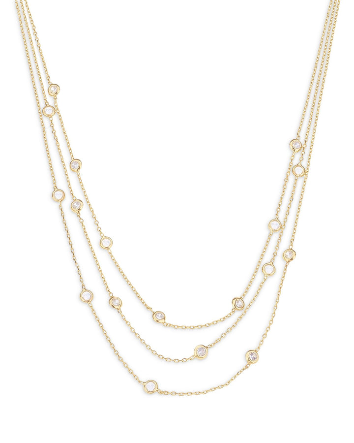 This Perfect Crystal Dotted Cubic Zirconia Layered Collar Necklace by Ettika from the Perfect Crystal Dotted collection sparkles with delicate cubic zirconia accents. Its layered design adds a touch of glamour to both casual and formal looks.