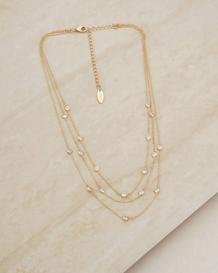 Perfect Crystal Dotted Cubic Zirconia Layered Collar Necklace in 18K Gold Plated, 13'-16'