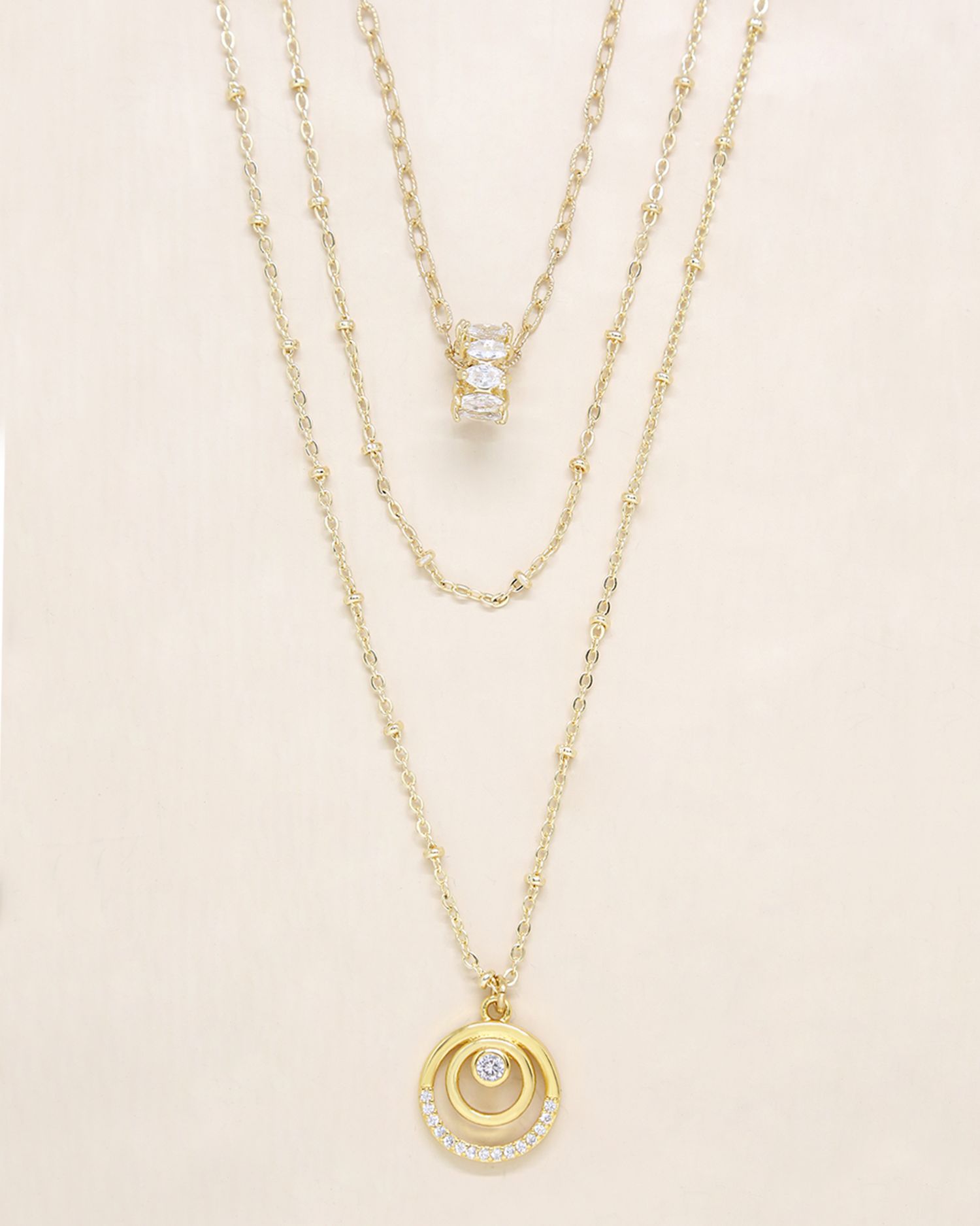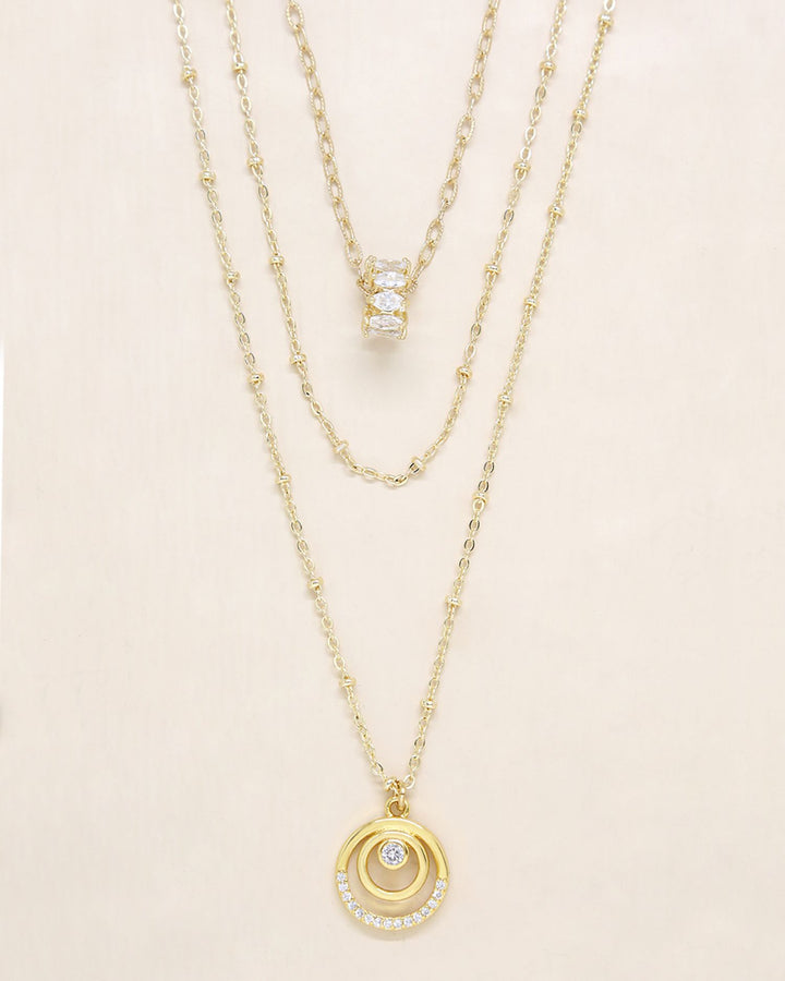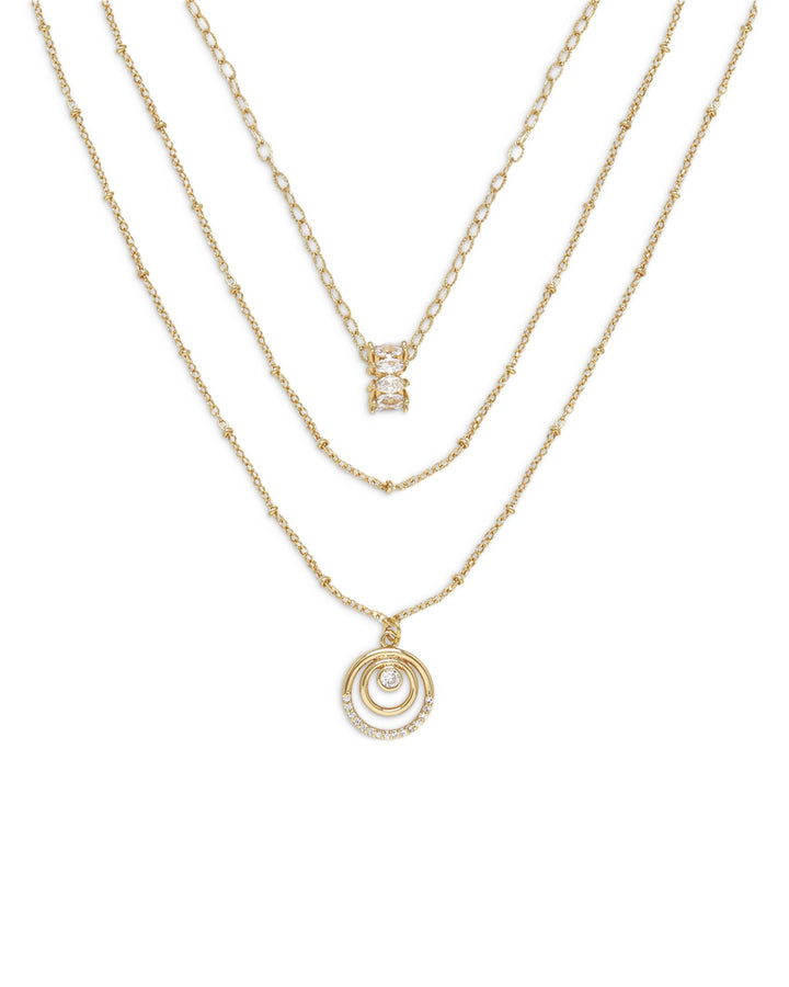 This Circles of Crystal Dainty Layered Necklace Set by Ettika includes two elegant necklaces adorned with delicate crystal details. Perfect for layering or wearing individually, these pieces add understated sparkle to your jewelry collection.