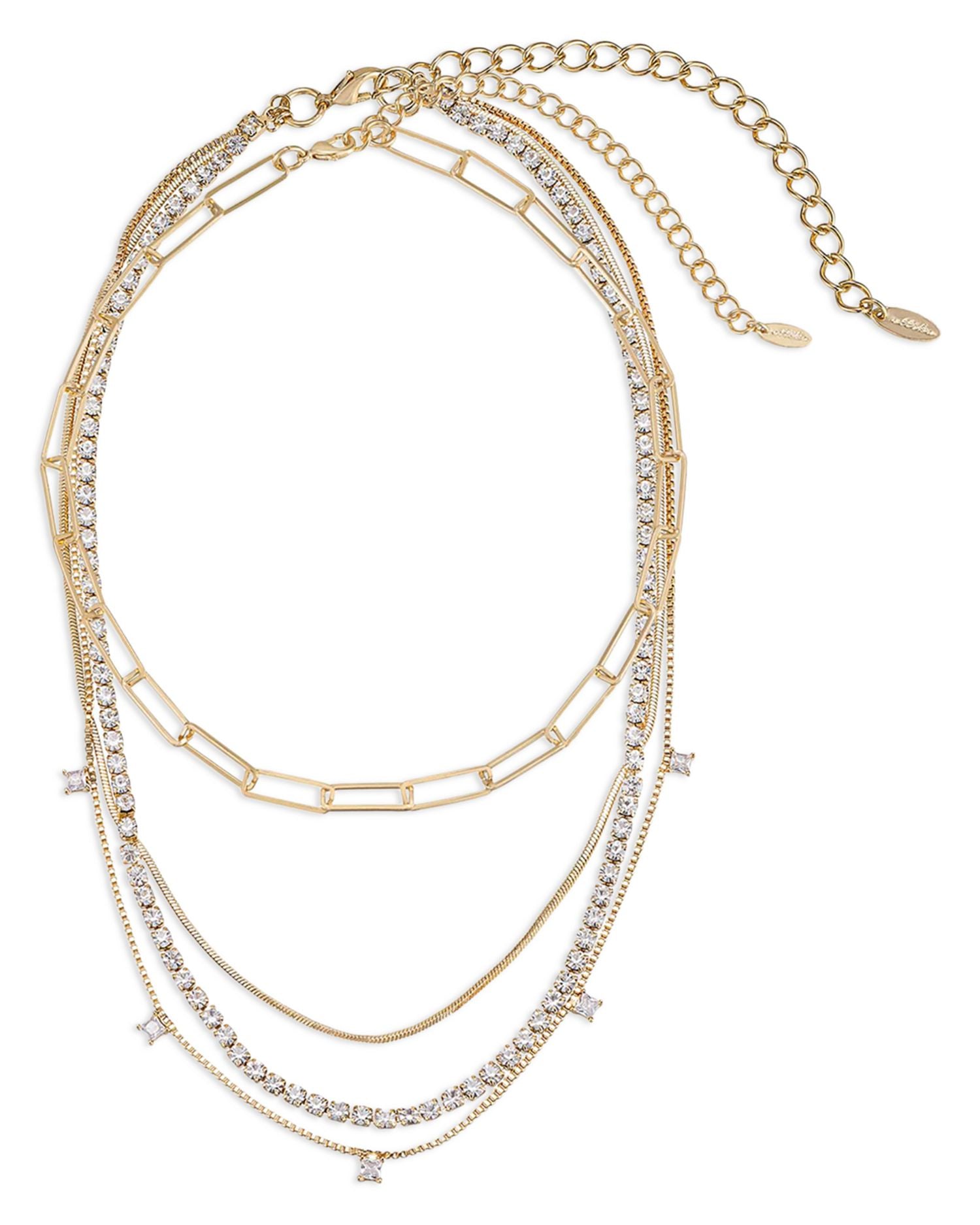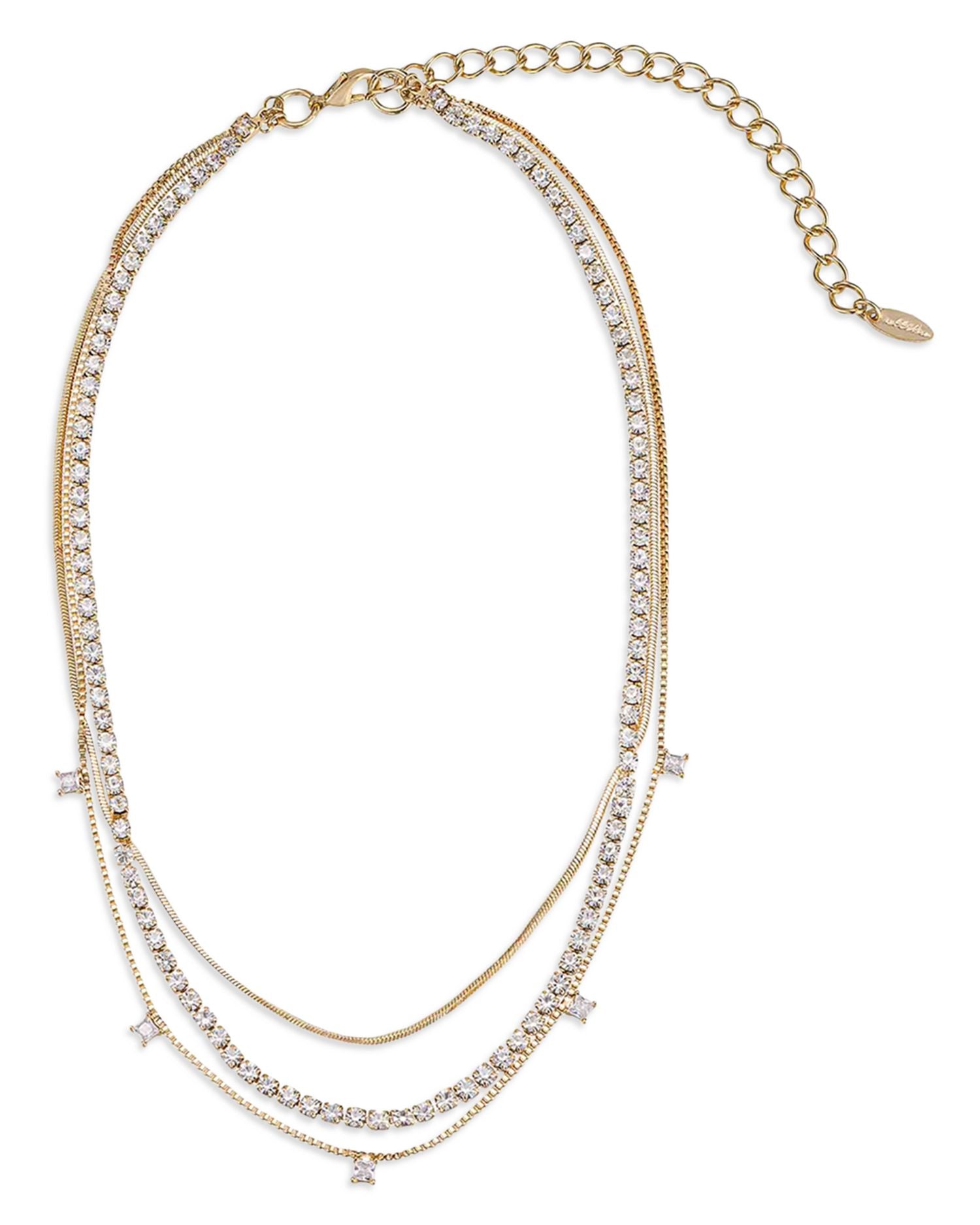 Created in 18K gold-plated metal with cubic zirconia. Adjustable lengths of 14'/15'-19'/20'. Secured with lobster clasp closures.
