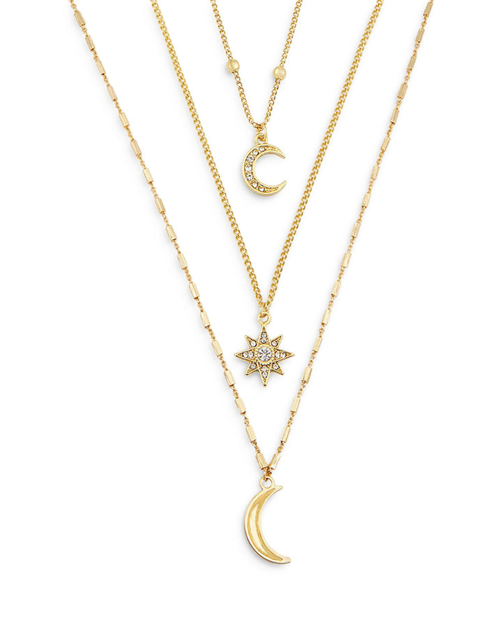 These Night Sky Necklaces by Ettika bring celestial-inspired elegance to your collection. The set of layered necklaces, crafted in 18K gold plating, is perfect for achieving a versatile and luminous look.