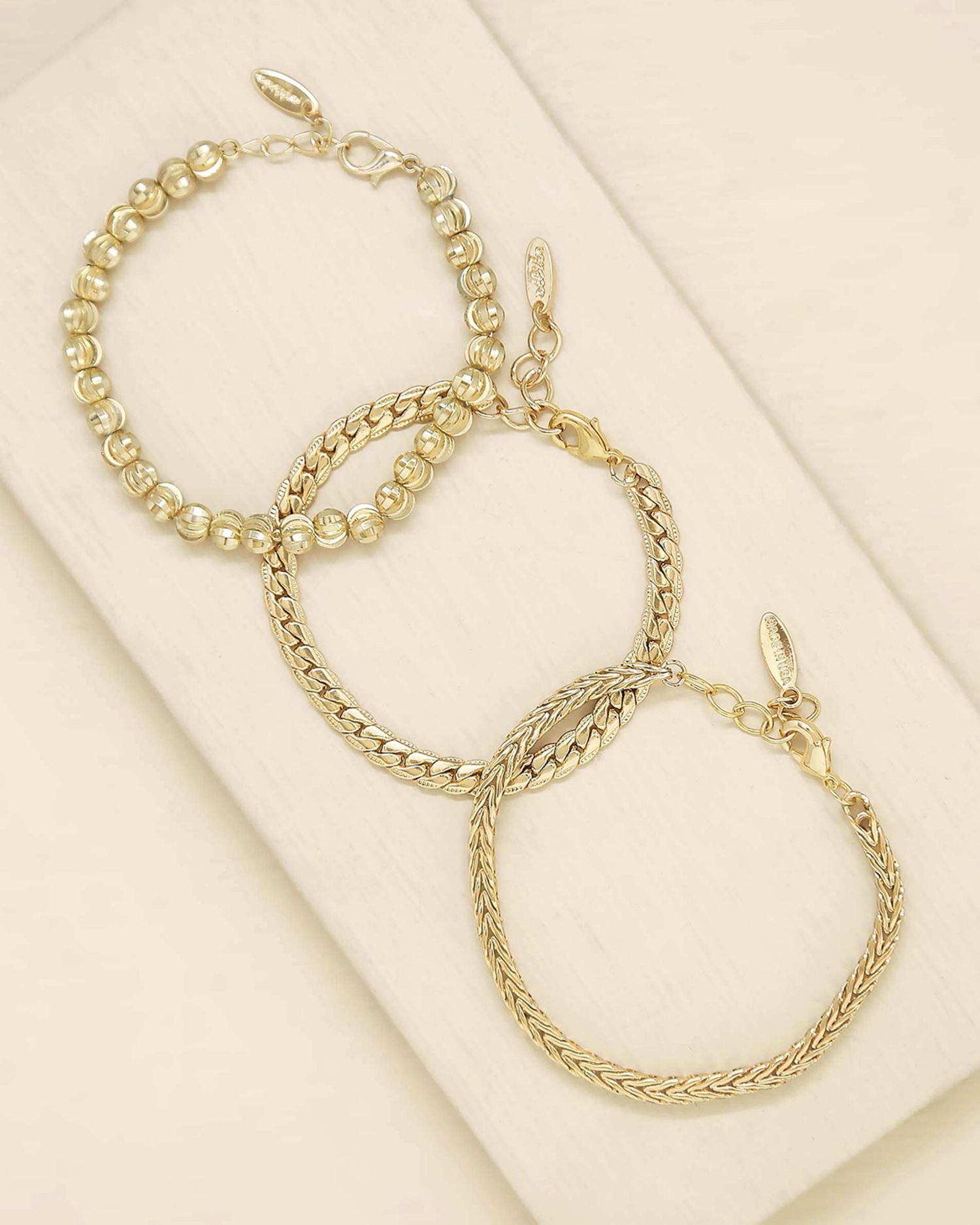 Classical Bracelets in 18K Gold Plate, Set of 3