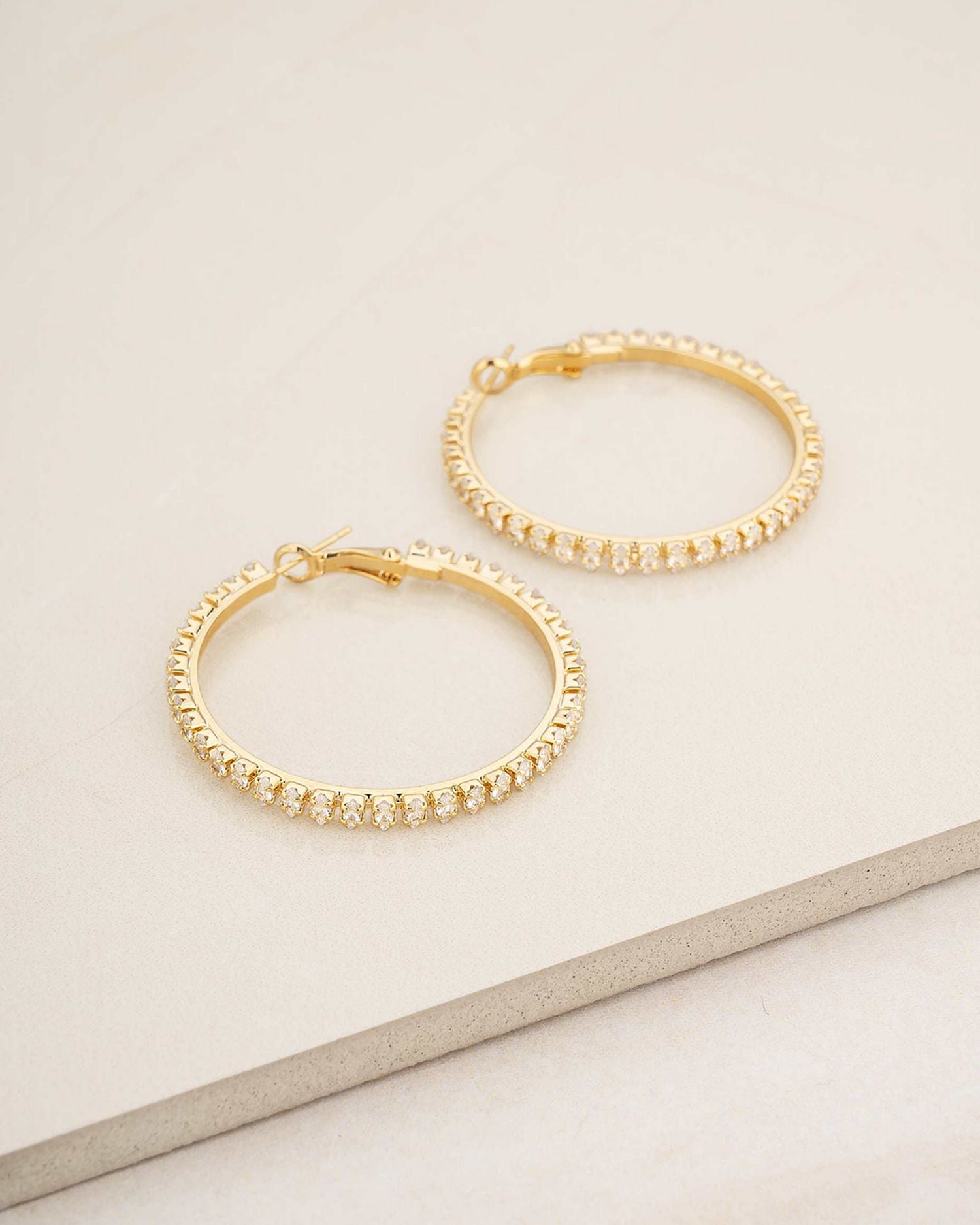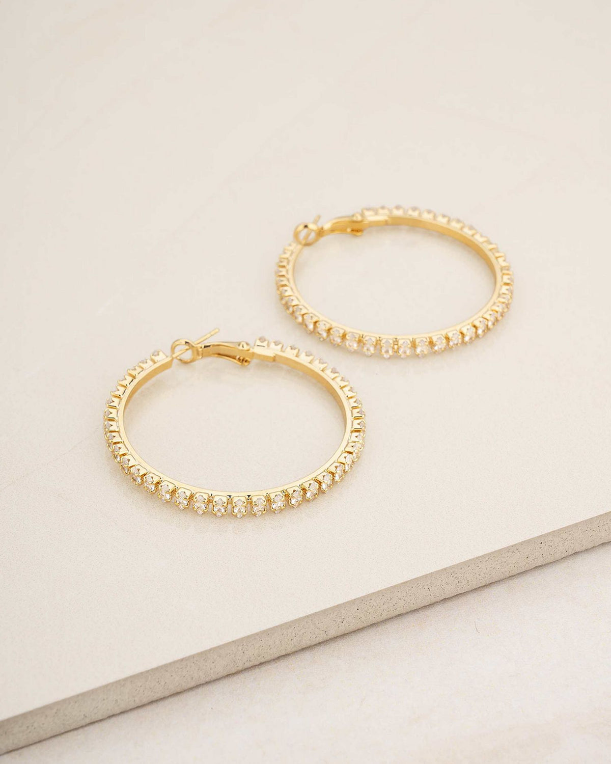 These Crystal Medium Hoop Earrings by Ettika bring classic elegance with a modern twist. Featuring sparkling cubic zirconia on a gold-plated hoop, they are ideal for adding a subtle touch of glamour to any outfit.