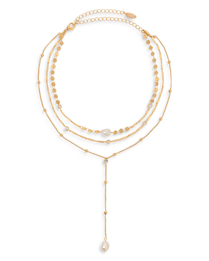 This Forever Freshwater Pearl Multi-Chain Choker Necklace by Ettika is a statement piece that blends modern style with timeless elegance. Featuring a multi-chain design accented with a luminous freshwater pearl, it’s perfect for adding sophistication to any look.