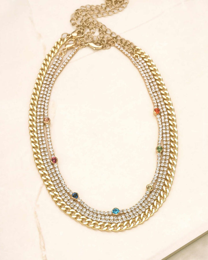 Chain Link & Cubic Zirconia Rainbow Necklace Set, 12'-17'