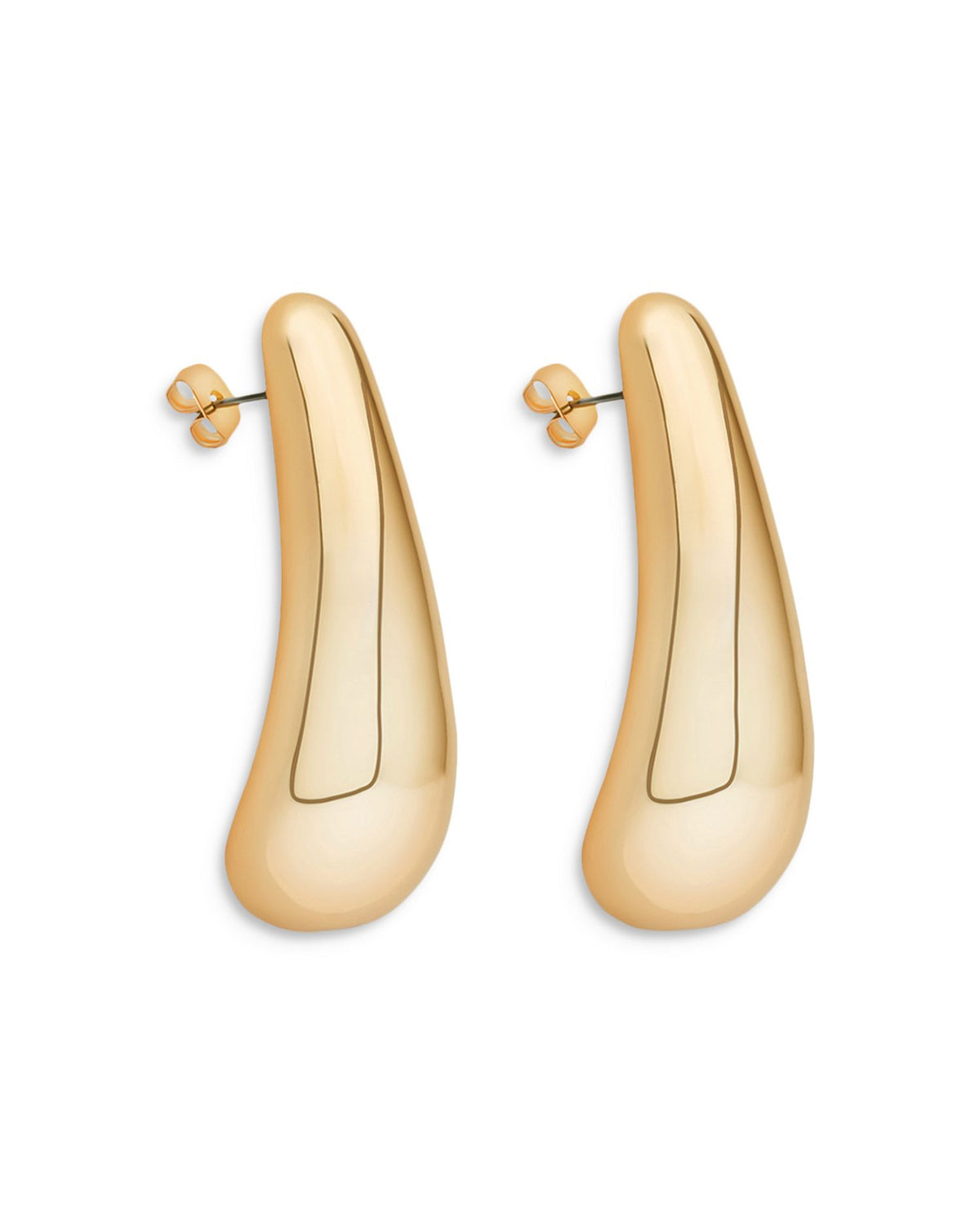 These Raindrop Metal Drop Earrings by Ettika, from the Raindrop collection, feature a sleek and elegant design inspired by the natural beauty of falling rain. Their minimalist style makes them a versatile choice for both casual and formal outfits.