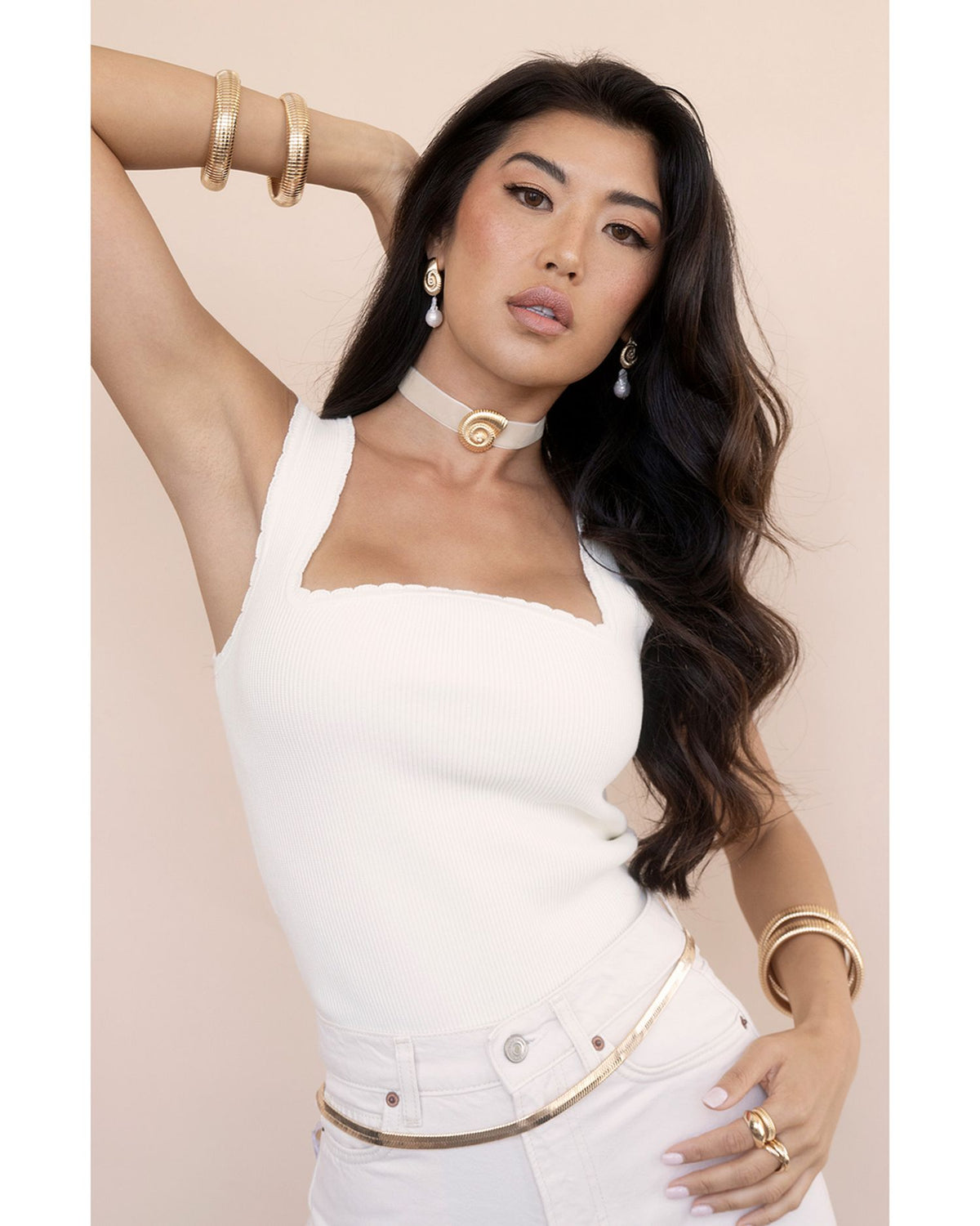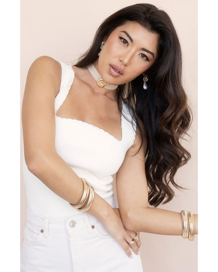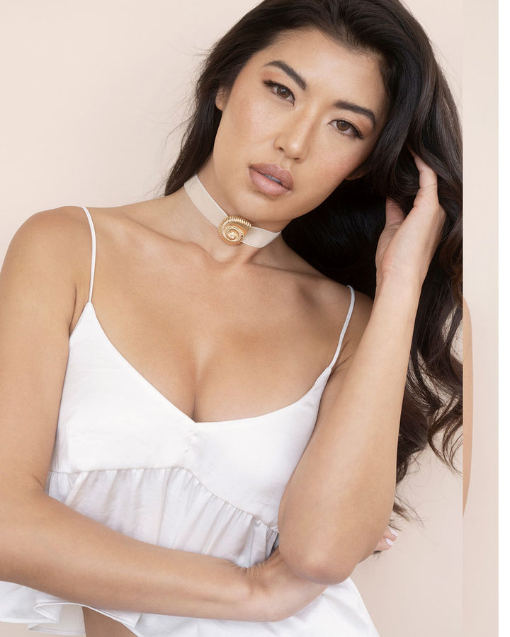 This Swirled Shell Pendant Velvet Choker by Ettika combines vintage-inspired elegance with modern charm. Featuring a swirled shell pendant adorned with glass crystals on a soft velvet band, it’s a striking accessory for elevating evening wear or making a bold statement.