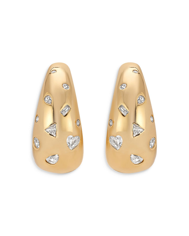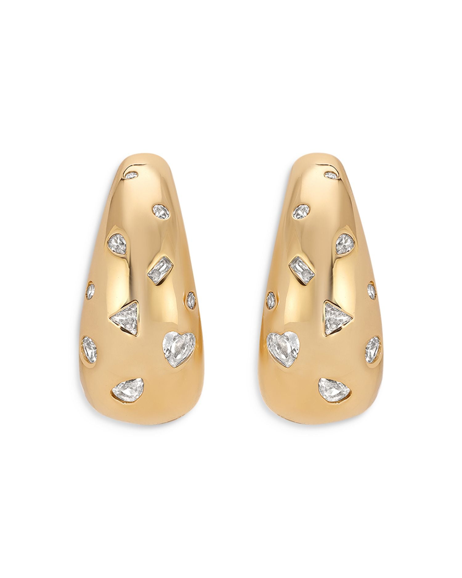 Crafted in 18K yellow gold-plated brass with cubic zirconia. Measure 1.15' in diameter and secured with post-back closures.
