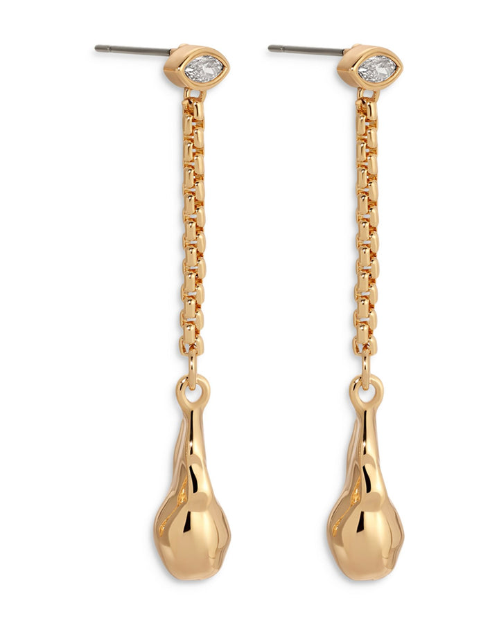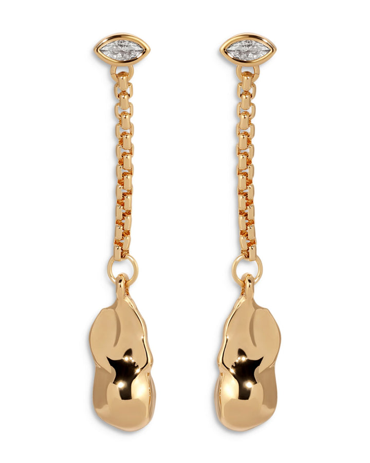 Made from 18K gold-plated brass with cubic zirconia. Measure 1.75' in length and secured with post-back closures.