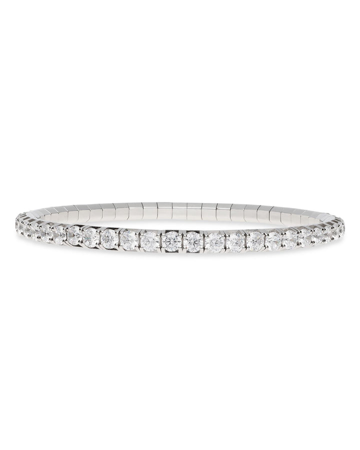 This 18K White Gold Diamond Stretch Tennis Bracelet by Extensible is a luxurious and timeless piece. Featuring round diamonds set in white gold, it’s perfect for adding sparkle to any outfit.