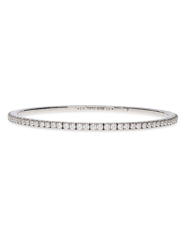 Crafted in 18K yellow gold or 18K white gold with 2.30 ct. t.w. diamonds (F-G/VS2). Measures 6.5' in length with a slip-on design. Made in Italy.