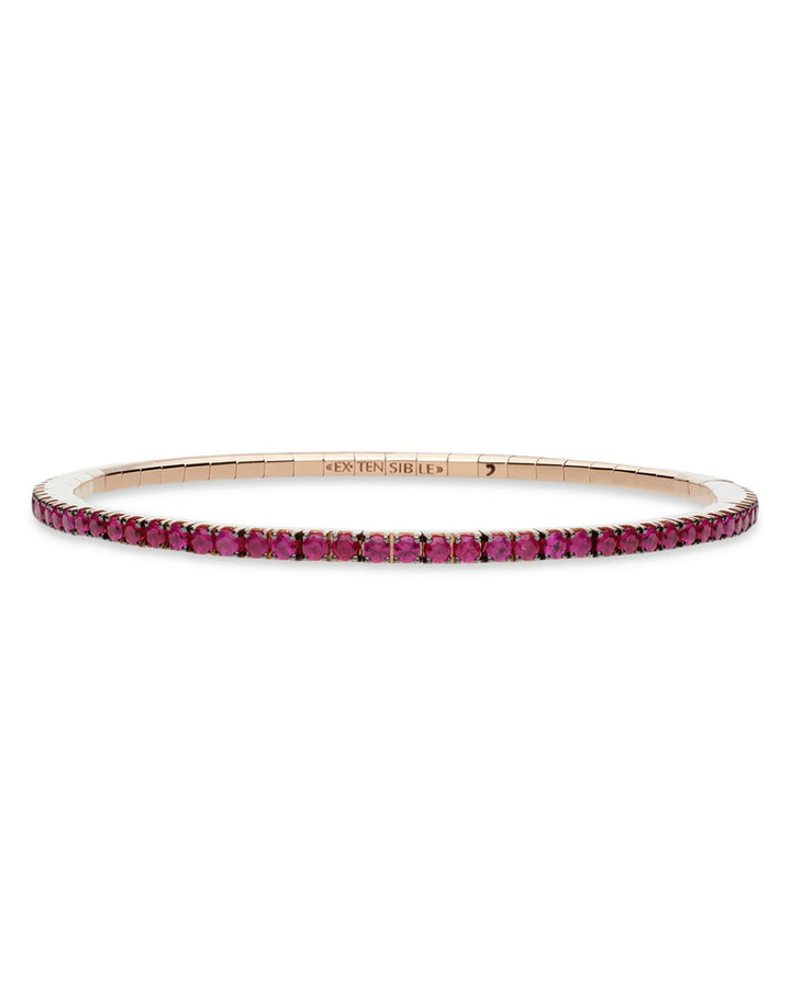 Crafted in 18K rose gold with 2.68 ct. t.w. round-cut rubies. Measures 6.5' in length with a slip-on design. Made in Italy. Note: Almost all rubies are lead-glass filled.