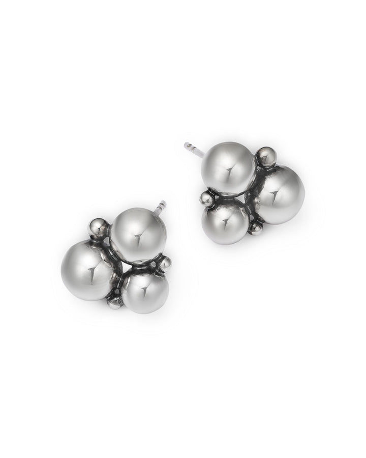 These Sterling Silver Moonlight Grapes Ball Cluster Stud Earrings by Georg Jensen, from the Moonlight Grapes collection, offer a casual yet sophisticated look. The ball cluster design adds a touch of flair to any outfit.