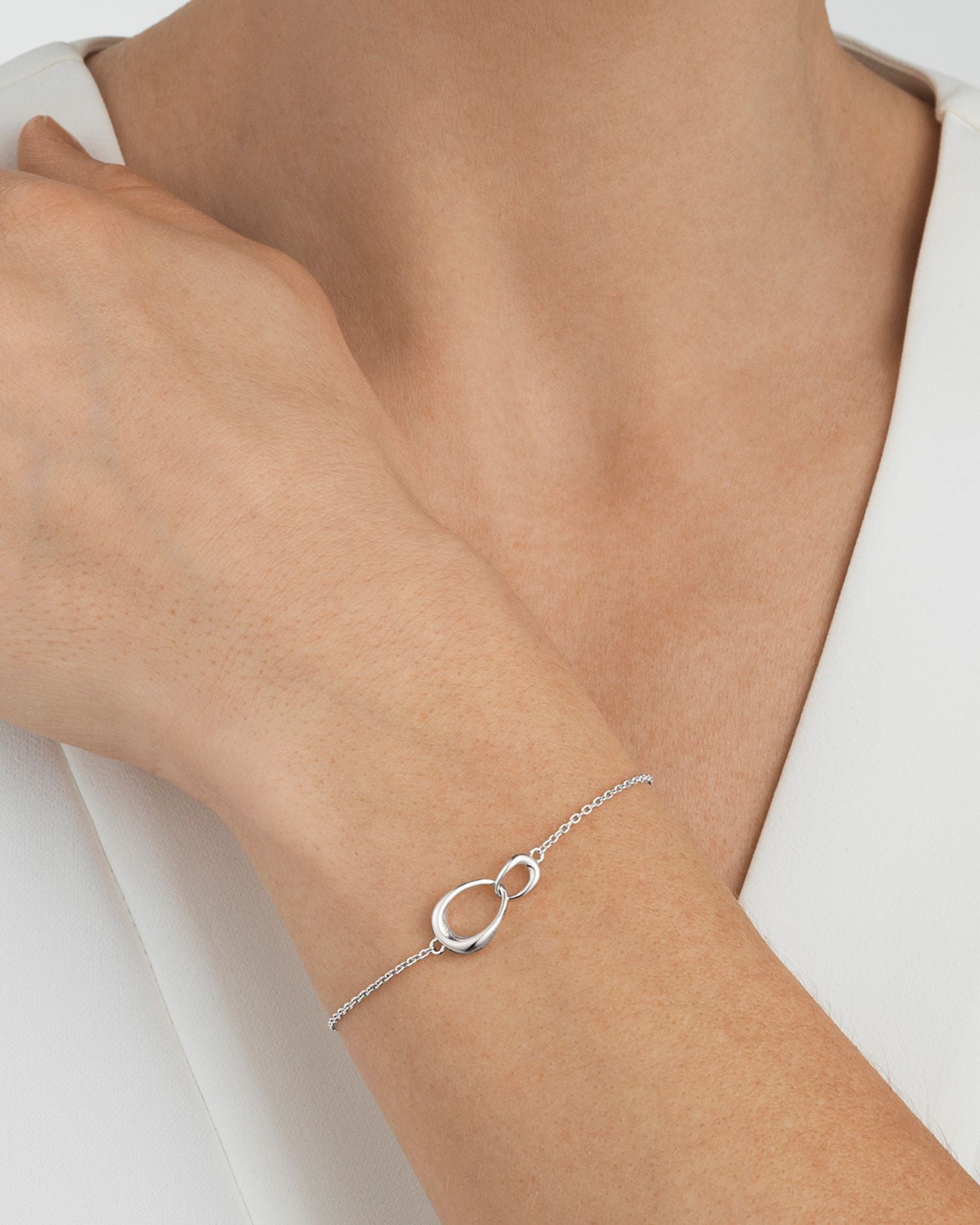 These Sterling Silver Offspring Link Bracelets by Georg Jensen feature interlocking organically shaped links on fine chains, creating a graceful and symbolic design. A meaningful addition to any jewelry collection.