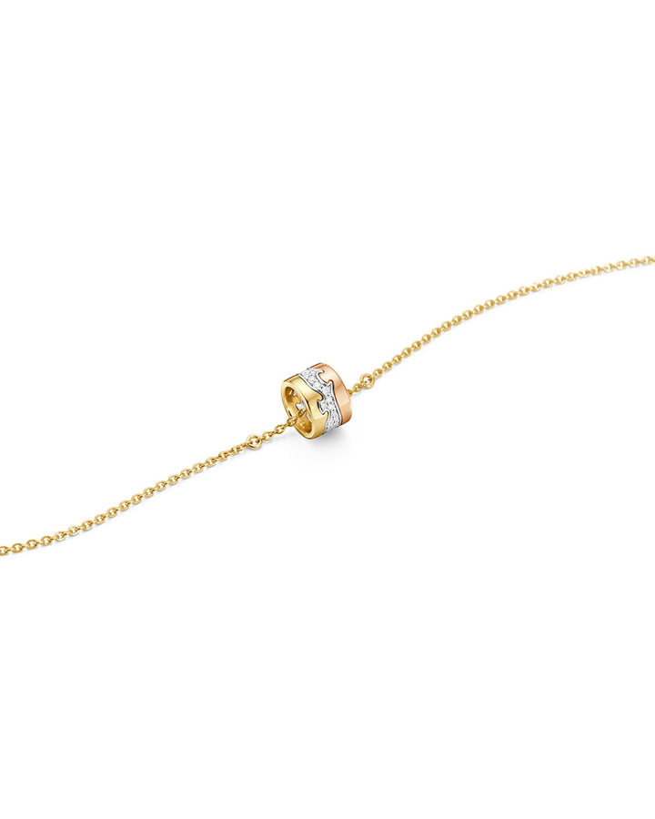 These Fusion Diamond Charm Link Bracelets by Georg Jensen, from the Fusion Collection, feature a sparkling diamond-studded charm that appears to float on fine link chains. Elegant and versatile, they make a perfect addition to any jewelry collection.