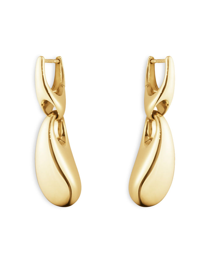 These 18K Yellow Gold Reflect Drop Earrings by Georg Jensen, from the Reflect Collection, add a brilliant touch of dazzle to your lobes. Their sleek drop design brings understated elegance to any outfit.