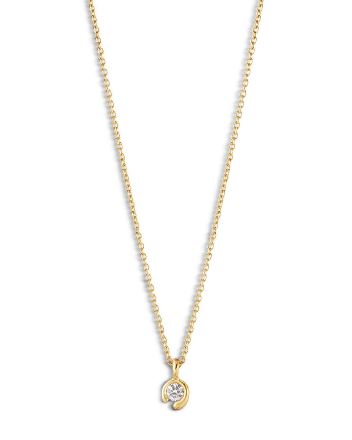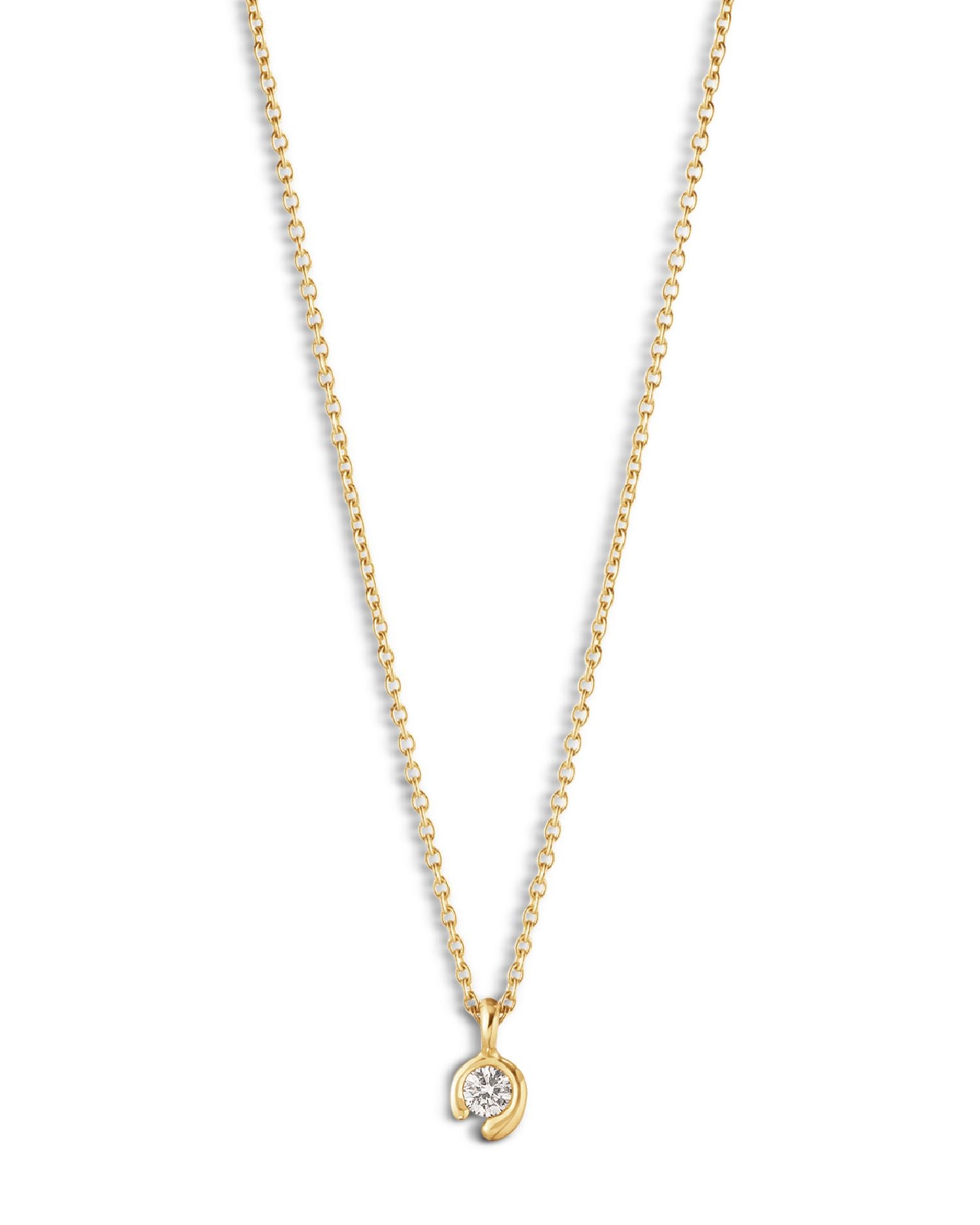 These 18K Yellow Gold Mercy Diamond Solitaire Pendant Necklaces by Georg Jensen, from the Mercy Collection, showcase dramatic diamond solitaire pendants. Their elegant simplicity makes them the centerpiece of any jewelry wardrobe.
