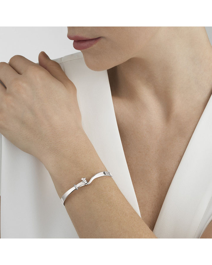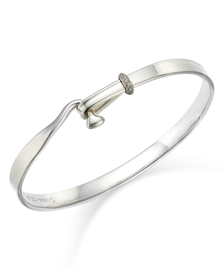 This Sterling Silver Torun Diamond Bangle Bracelet by Georg Jensen from the Torun collection pairs polished sterling silver with a shimmering band of diamonds for a look of understated elegance. A timeless design that embodies grace and sophistication.