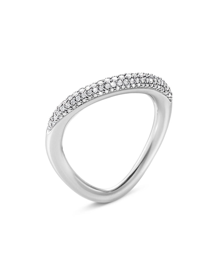 This Sterling Silver Offspring Diamond Pavé Wavy Ring by Georg Jensen, from the Offspring collection, combines a polished silver finish with a wavy silhouette topped with stunning diamond pavé. A modern yet timeless design, perfect for adding a sophisticated touch to your look.