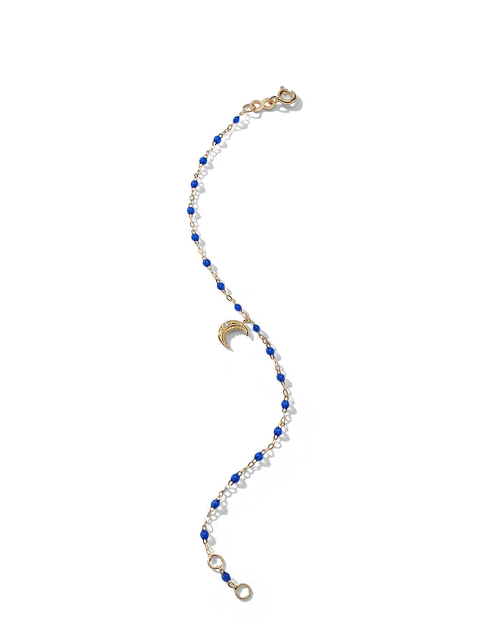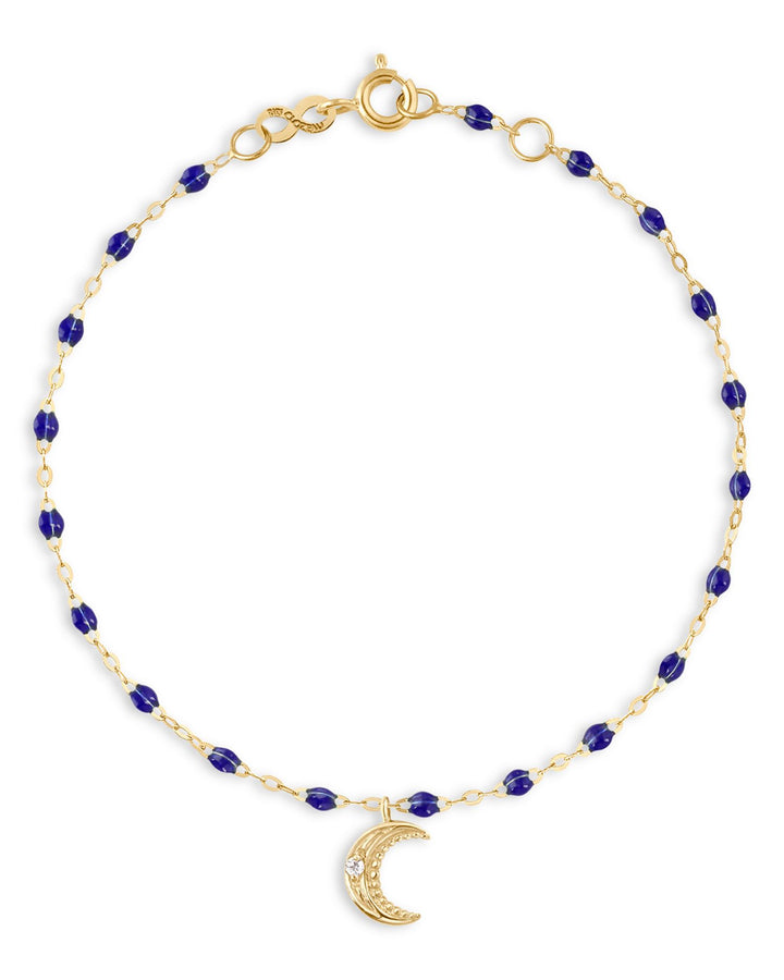 This 18K Yellow Gold Pirate Diamond & Lapis Petite Moon Bracelet by Gigi Clozeau combines elegance and charm with a lapis beaded chain and a diamond-accented moon charm. From the Pirate Collection, this bracelet is perfect for adding a celestial touch to your look.