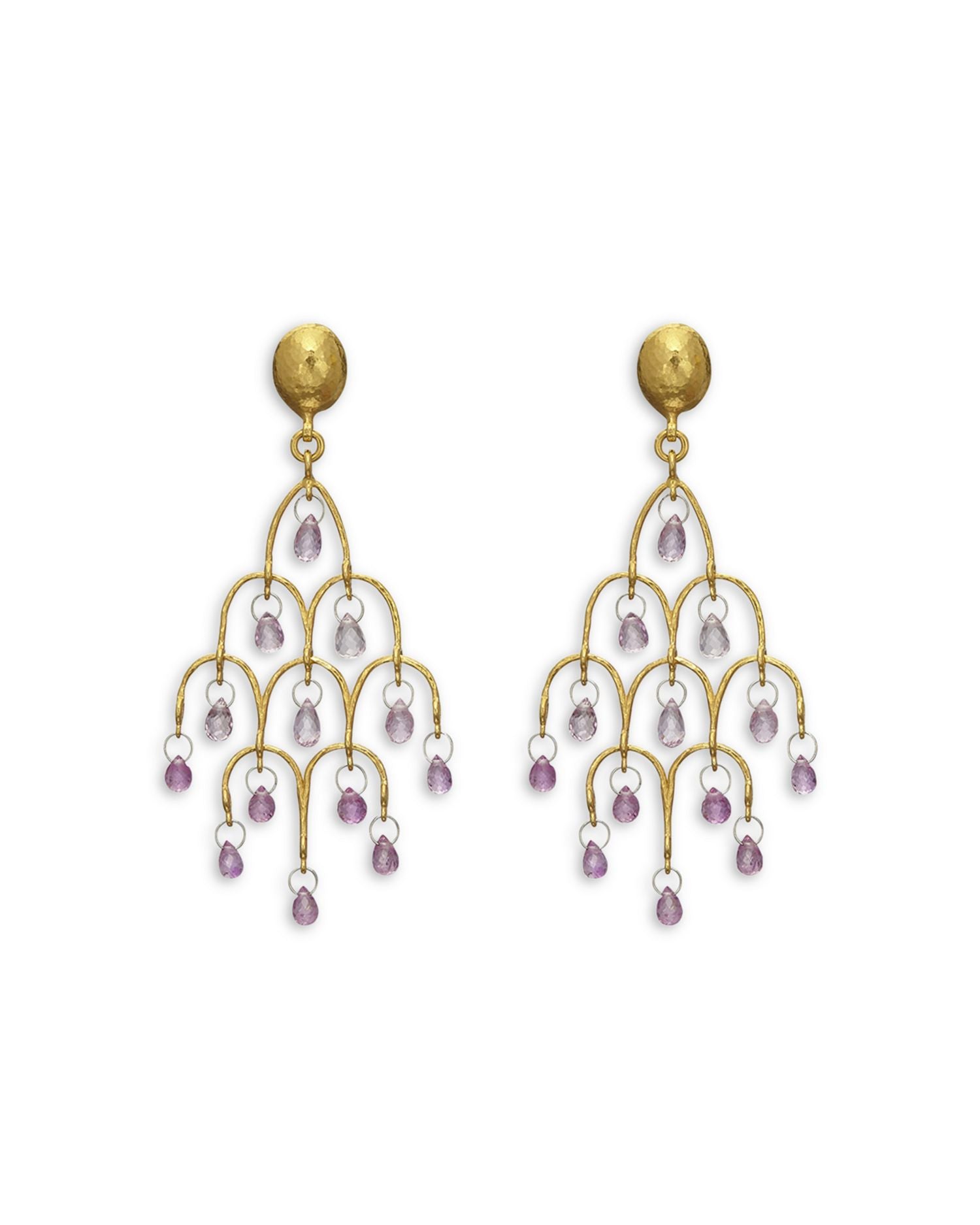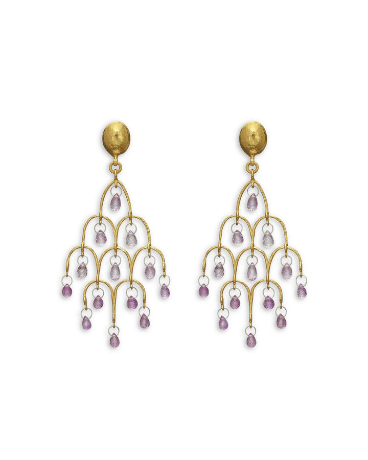 22K Gold Pink Sapphire Briolette Chandelier Earrings