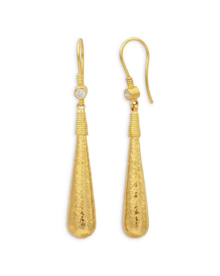 18 & 24K Yellow Gold Spell Diamond Hammered Drop Earrings