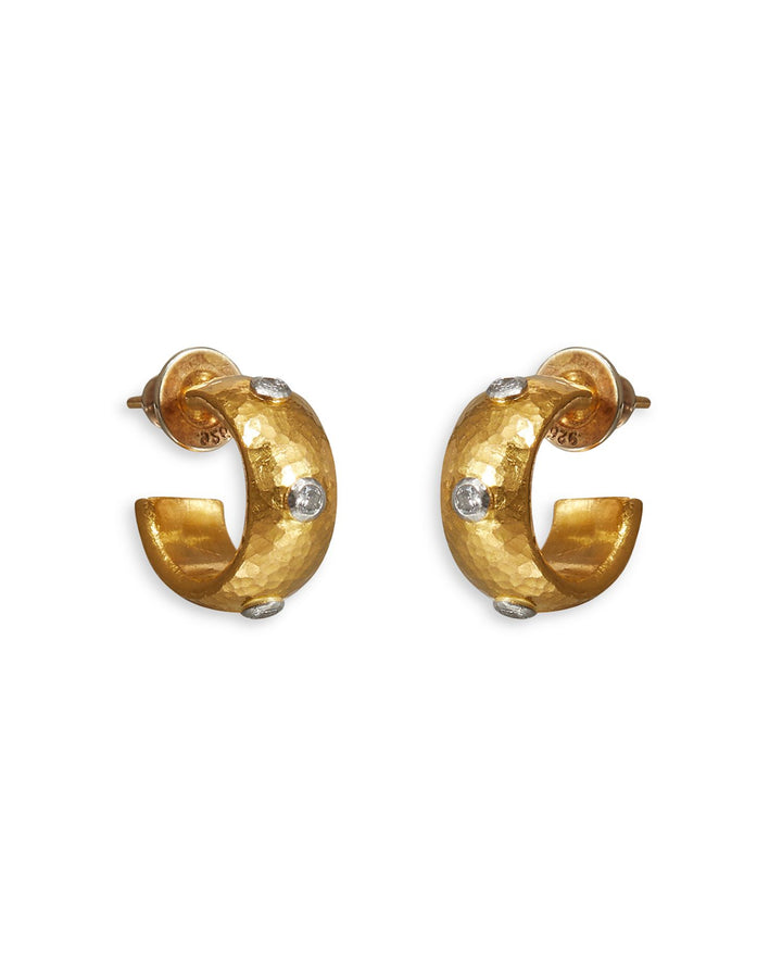 These 24K Yellow Gold Hoopla Diamond Huggie Hoop Earrings by Gurhan, from the Hoopla collection, are luxurious and compact. Their diamond-studded design adds a subtle yet radiant touch to any outfit.