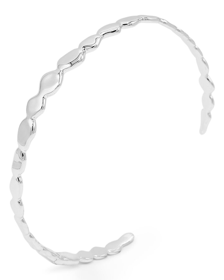 Made from rhodium-plated brass. Measures 4.09" in inner diameter. Slip-on style. Rhodium plating may require special care.