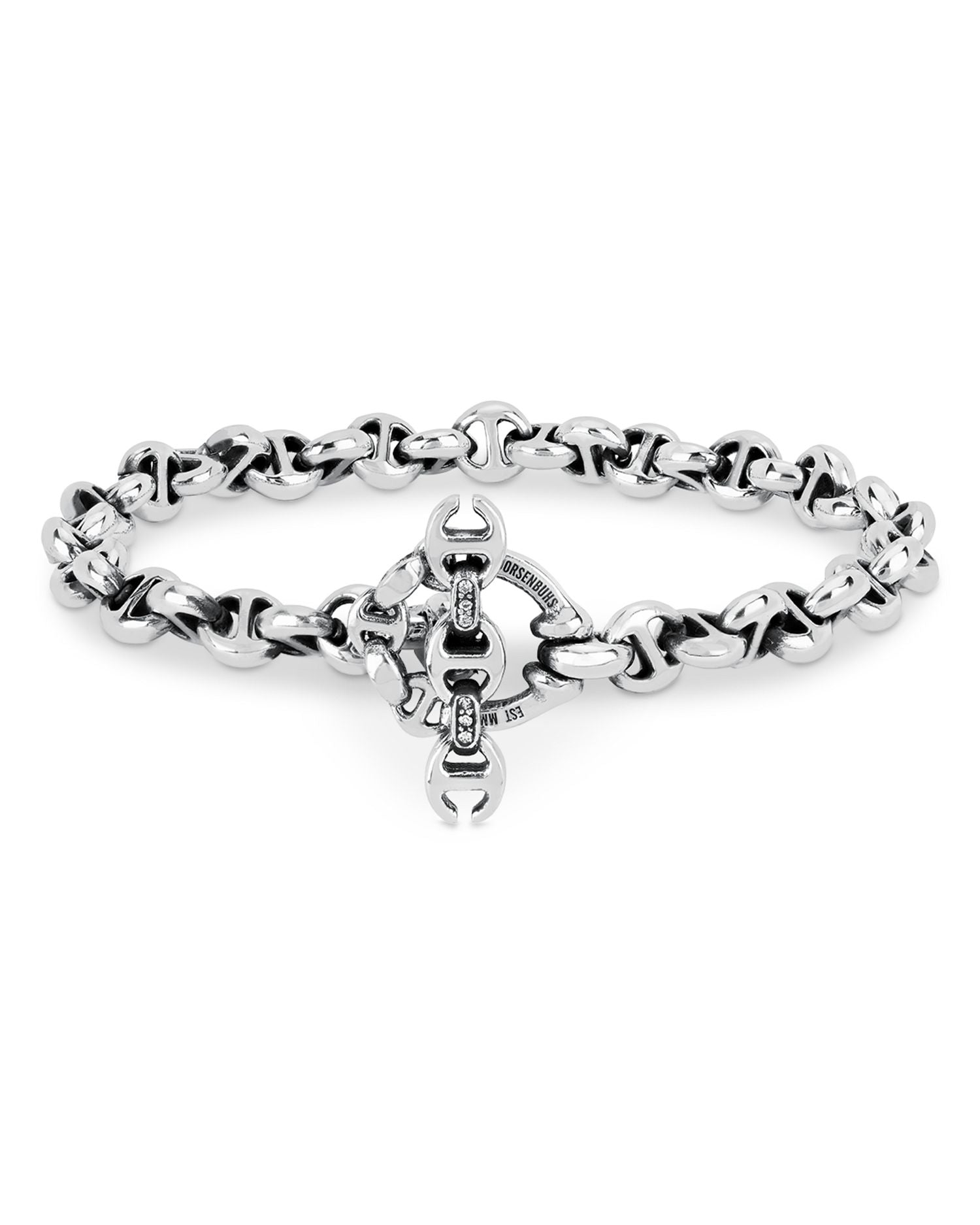 This Sterling Silver Open Link Bracelet with Diamond by HOORSENBUHS blends bold design with subtle sparkle, featuring chunky sterling silver links finished with diamond-encrusted toggles. A modern statement piece from the Open Link Collection.